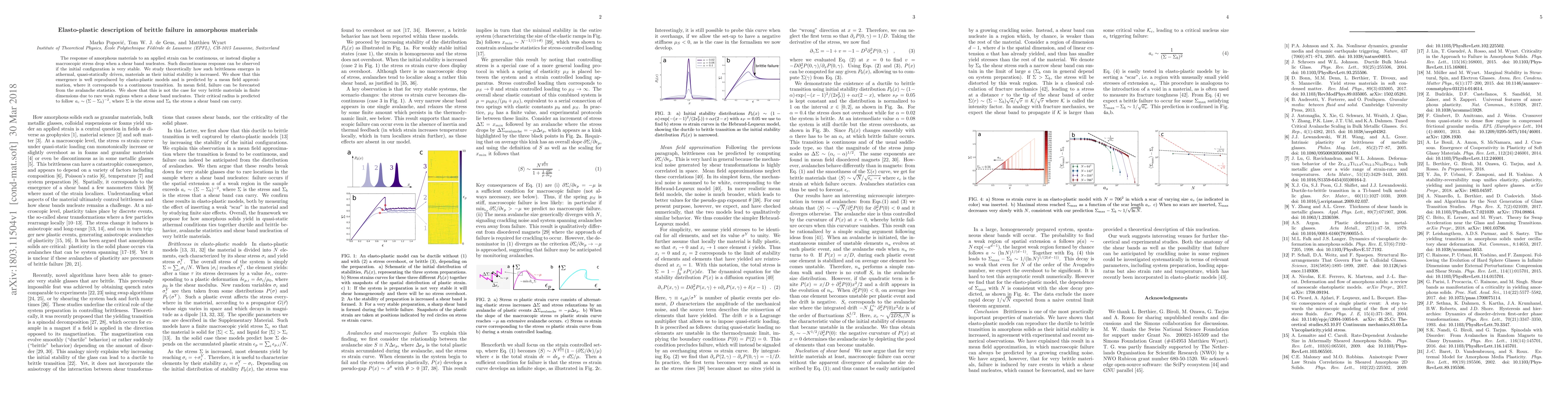 The paper investigates how brittle failure emerges in amorphous materials as their initial stability increases, showing that it can be predicted by elasto-plastic models and mean field approximations.