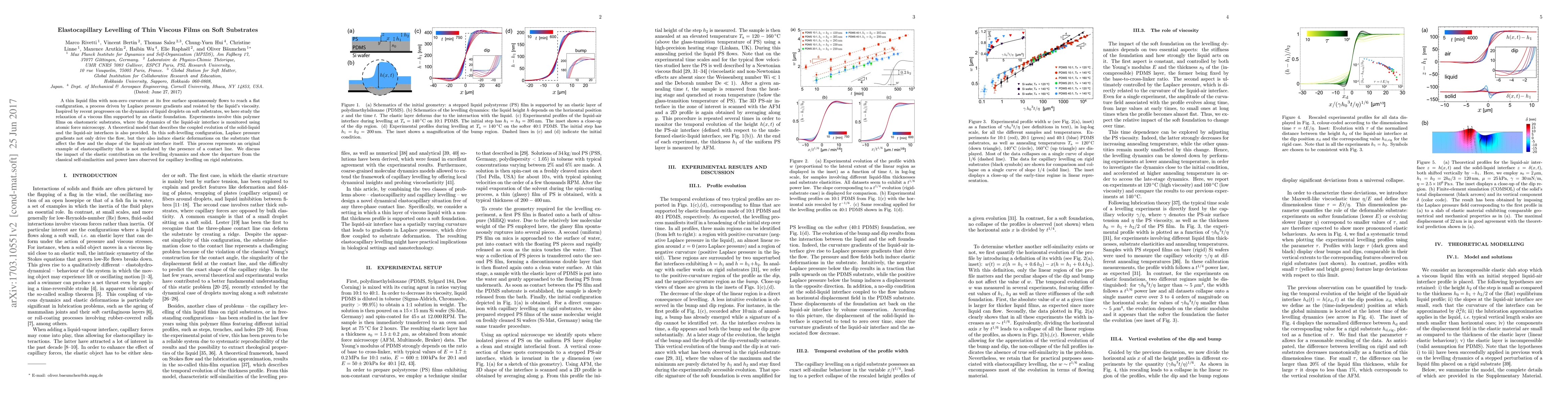 A thin liquid film with non-zero curvature at its free surface spontaneously flows to reach a flat configuration, a process driven by Laplace pressure gradients and resisted by the liquid's viscosity. Inspired by recent progresses on the dynamics of liquid droplets on soft substrates, we here study the relaxation of a viscous film supported by an elastic foundation. Experiments involve thin polymer films on elastomeric substrates, where the dynamics of the liquid-air interface is monitored using atomic force microscopy. A theoretical model that describes the coupled evolution of the solid-liquid and the liquid-air interfaces is also provided. In this soft-levelling configuration, Laplace pressure gradients not only drive the flow, but they also induce elastic deformations on the substrate that affect the flow and the shape of the liquid-air interface itself. This process represents an original example of elastocapillarity that is not mediated by the presence of a contact line. We discuss the impact of the elastic contribution on the levelling dynamics and show the departure from the classical self-similarities and power laws observed for capillary levelling on rigid substrates.