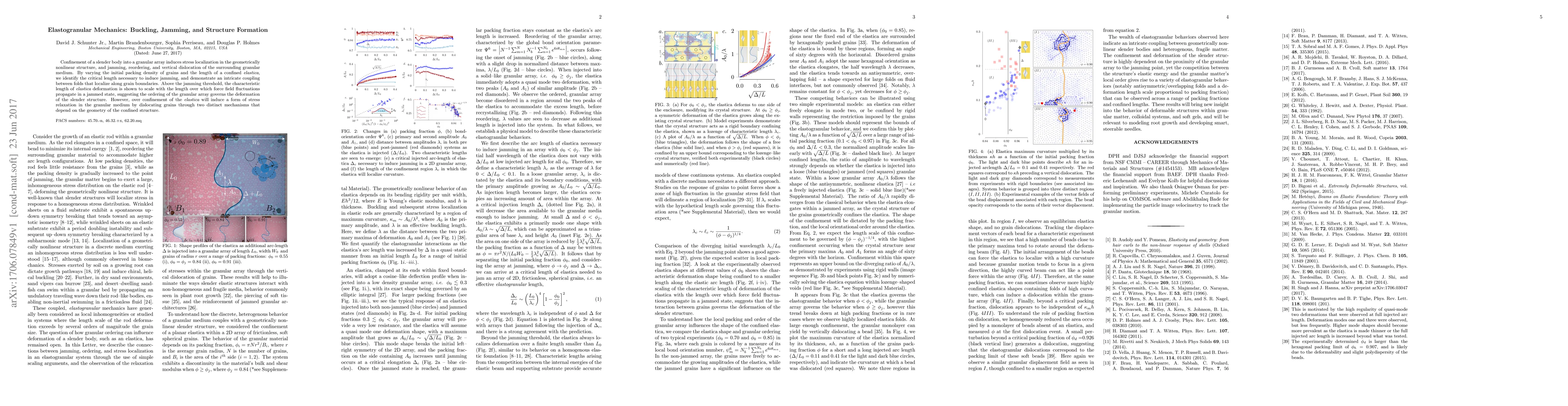Confinement of a slender body into a granular array induces stress localization in the geometrically nonlinear structure, and jamming, reordering, and vertical dislocation of the surrounding granular medium. By varying the initial packing density of grains and the length of a confined elastica, we identify the critical length necessary to induce jamming, and demonstrate an intricate coupling between folds that localize along grain boundaries. Above the jamming threshold, the characteristic length of elastica deformation is shown to scale with the length over which force field fluctuations propagate in a jammed state, suggesting the ordering of the granular array governs the deformation of the slender structure. However, over confinement of the elastica will induce a form of stress relaxation in the granular medium by dislocating grains through two distinct mechanisms that depend on the geometry of the confined structure.