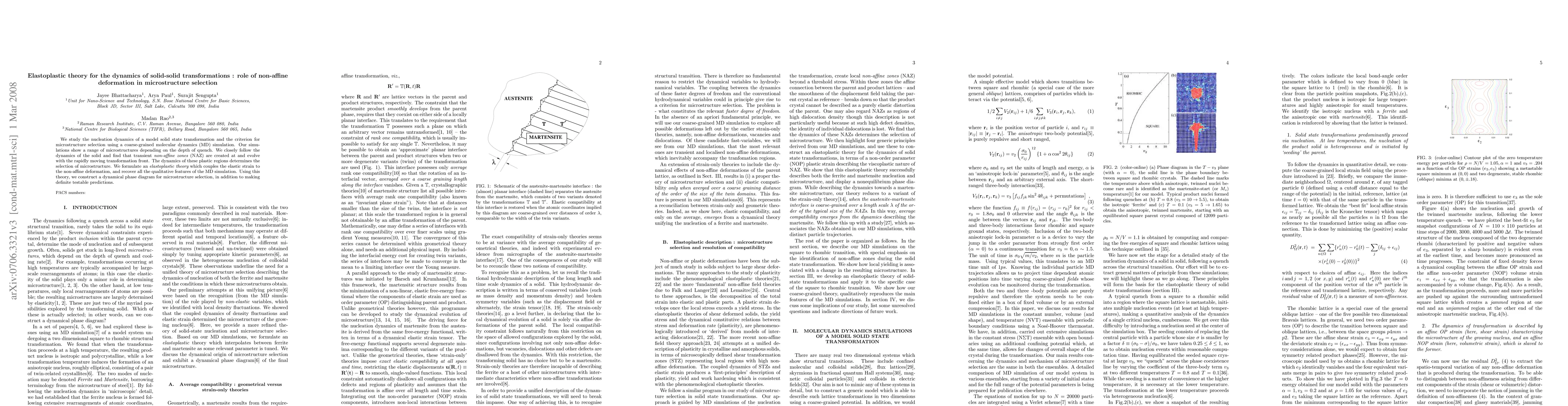 This paper develops an elastoplastic model to describe solid-solid transformations, focusing on the role of non-affine deformation in determining microstructure selection. Molecular dynamics simulations reveal that transient non-affine zones influence the transformation front dynamics, leading to diverse microstructures based on quench depth.