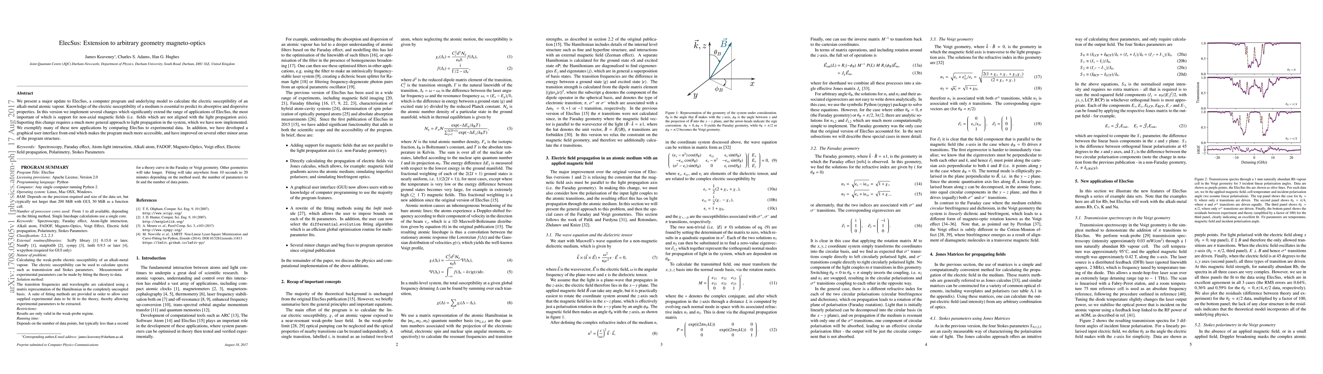We present a major update to ElecSus, a computer program and underlying model to calculate the electric susceptibility of an alkali-metal atomic vapour. Knowledge of the electric susceptibility of a medium is essential to predict its absorptive and dispersive properties. In this version we implement several changes which significantly extend the range of applications of ElecSus, the most important of which is support for non-axial magnetic fields (i.e. fields which are not aligned with the light propagation axis). Suporting this change requires a much more general approach to light propagation in the system, which we have now implemented. We exemplify many of these new applications by comparing ElecSus to experimental data. In addition, we have developed a graphical user interface front-end which makes the program much more accessible, and have improved on several other minor areas of the program structure.