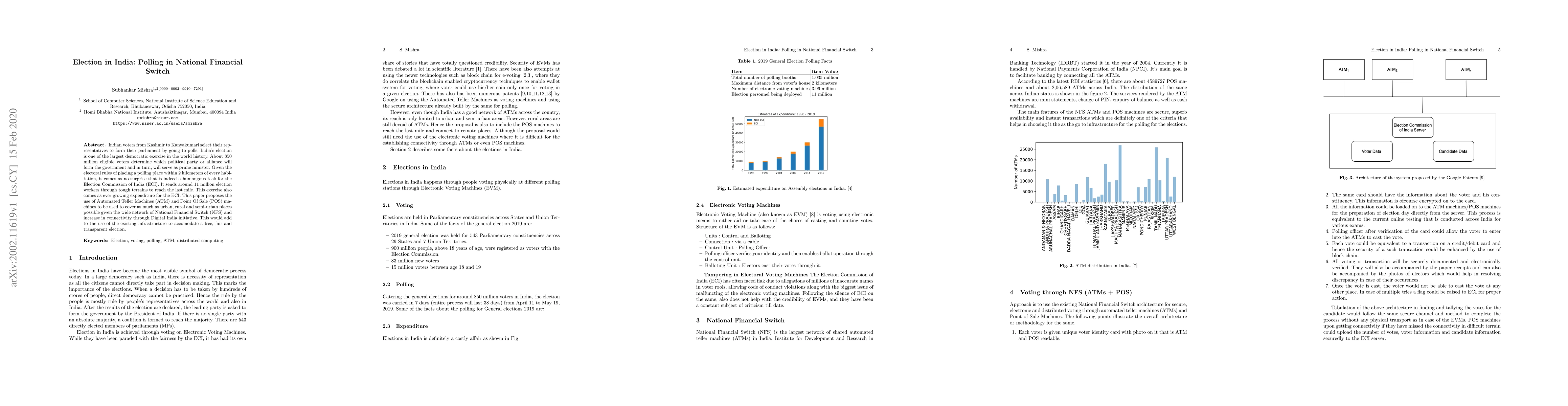Indian voters from Kashmir to Kanyakumari select their representatives to form their parliament by going to polls. India's election is one of the largest democratic exercise in the world history. About 850 million eligible voters determine which political party or alliance will form the government and in turn, will serve as prime minister. Given the electoral rules of placing a polling place within 2 kilometers of every habitation, it comes as no surprise that is indeed a humongous task for the Election Commission of India (ECI). It sends around 11 million election workers through tough terrains to reach the last mile. This exercise also comes as ever growing expenditure for the ECI. This paper proposes the use of Automated Teller Machines (ATM) and Point Of Sale (POS) machines to be used to cover as much as urban, rural and semi-urban places possible given the wide network of National Financial Switch (NFS) and increase in connectivity through Digital India initiative. This would add to the use of the existing infrastructure to accommodate a free, fair and transparent election.