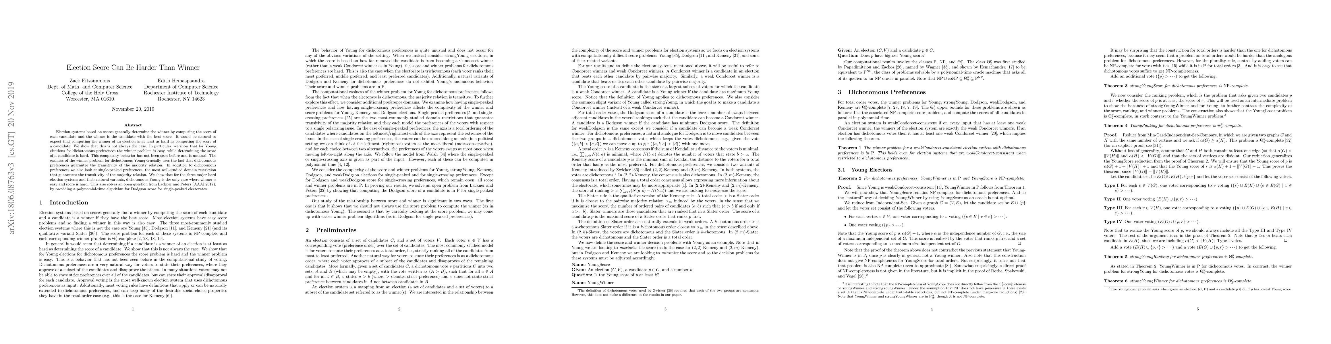 This paper shows that in certain types of elections, determining the winner can be easy while calculating a candidate's score is hard, contradicting intuition. It resolves an open question on election complexity, providing polynomial-time algorithms for some systems.