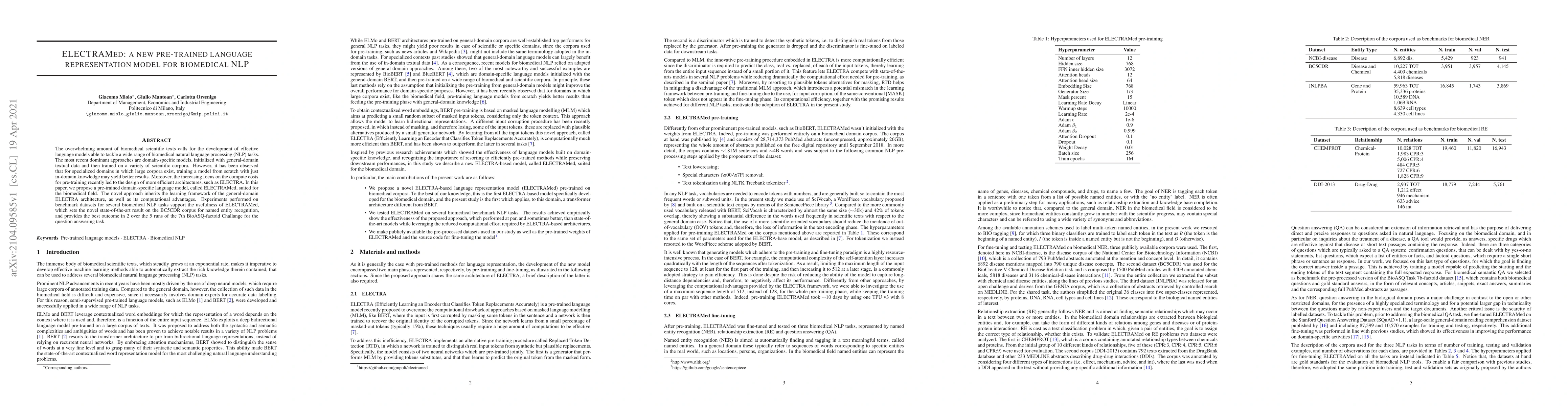 ELECTRAMed is a domain-specific pre-trained language model for biomedical NLP tasks, pre-trained using the efficient ELECTRA architecture on a biomedical corpus with a domain-specific vocabulary.