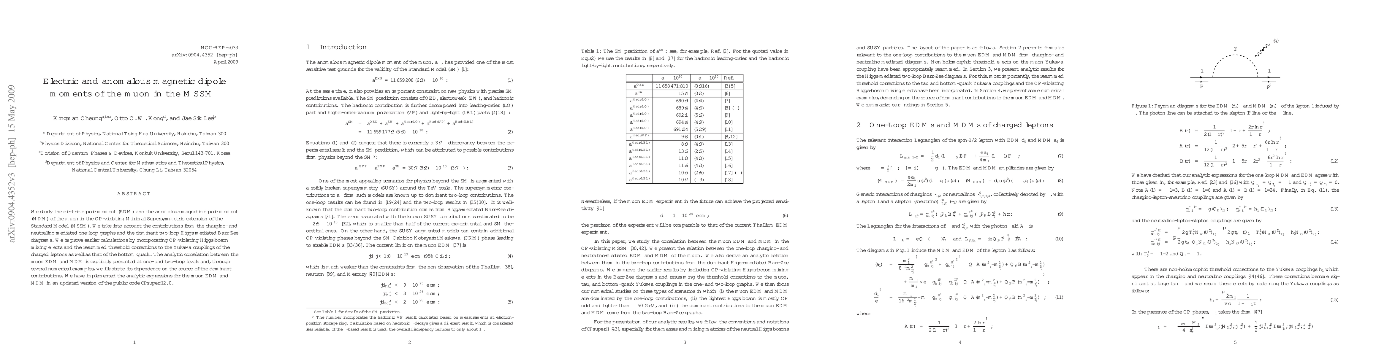 We study the electric dipole moment (EDM) and the anomalous magnetic dipole moment (MDM) of the muon in the CP-violating Minimal Supersymmetric extension of the Standard Model (MSSM). We take into account the contributions from the chargino- and neutralino-mediated one-loop graphs and the dominant two-loop Higgs-mediated Barr-Zee diagrams. We improve earlier calculations by incorporating CP-violating Higgs-boson mixing effects and the resummed threshold corrections to the Yukawa couplings of the charged leptons as well as that of the bottom quark. The analytic correlation between the muon EDM and MDM is explicitly presented at one- and two-loop levels and, through several numerical examples, we illustrate its dependence on the source of the dominant contributions. We have implemented the analytic expressions for the muon EDM and MDM in an updated version of the public code CPsuperH2.0.