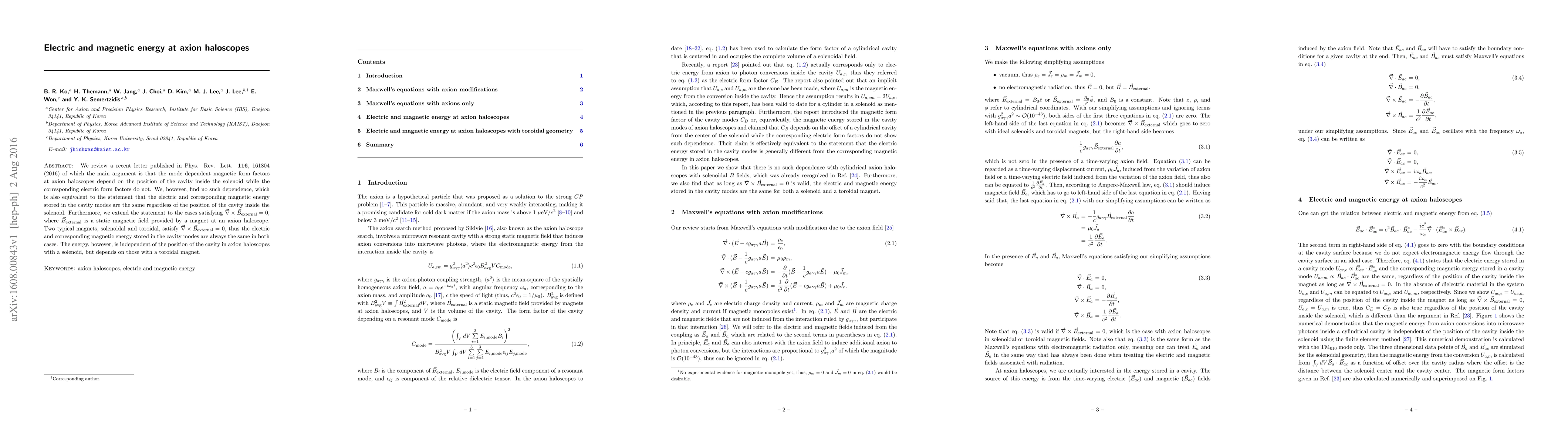 We review a recent letter published in Phys. Rev. Lett. $\textbf{116}$, 161804 (2016) of which the main argument is that the mode dependent magnetic form factors at axion haloscopes depend on the position of the cavity inside the solenoid while the corresponding electric form factors do not. We, however, find no such dependence, which is also equivalent to the statement that the electric and corresponding magnetic energy stored in the cavity modes are the same regardless of the position of the cavity inside the solenoid. Furthermore, we extend the statement to the cases satisfying $\vec{\nabla}\times\vec{B}_{\rm external}=0$, where $\vec{B}_{\rm external}$ is a static magnetic field provided by a magnet at an axion haloscope. Two typical magnets, solenoidal and toroidal, satisfy $\vec{\nabla}\times\vec{B}_{\rm external}=0$, thus the electric and corresponding magnetic energy stored in the cavity modes are always the same in both cases. The energy, however, is independent of the position of the cavity in axion haloscopes with a solenoid, but depends on those with a toroidal magnet.