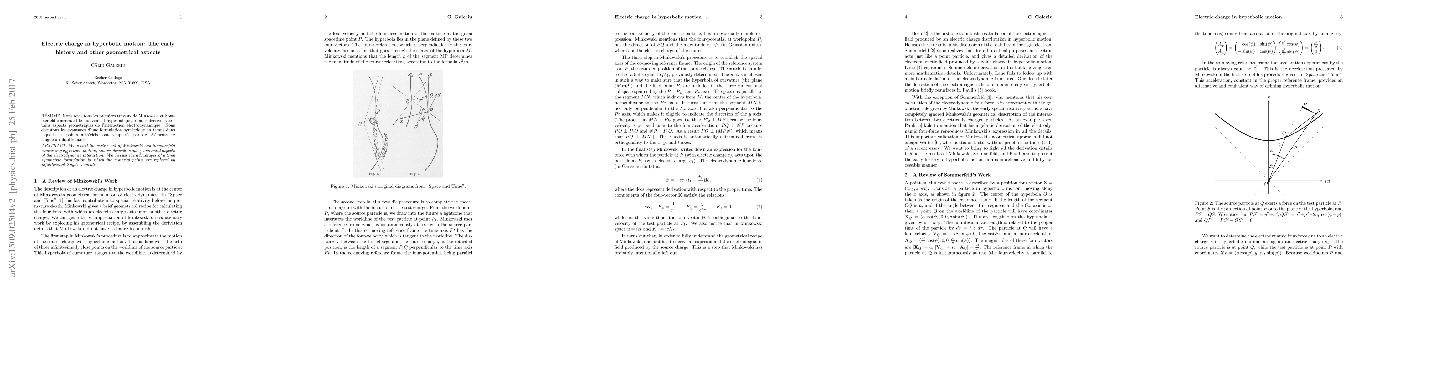 Summary: This paper revisits Minkowski and Sommerfeld's early contributions to understanding hyperbolic motion, focusing on the geometrical aspects of electrodynamic interactions. It highlights the benefits of a time-symmetric formulation using infinitesimal length elements instead of material points.
