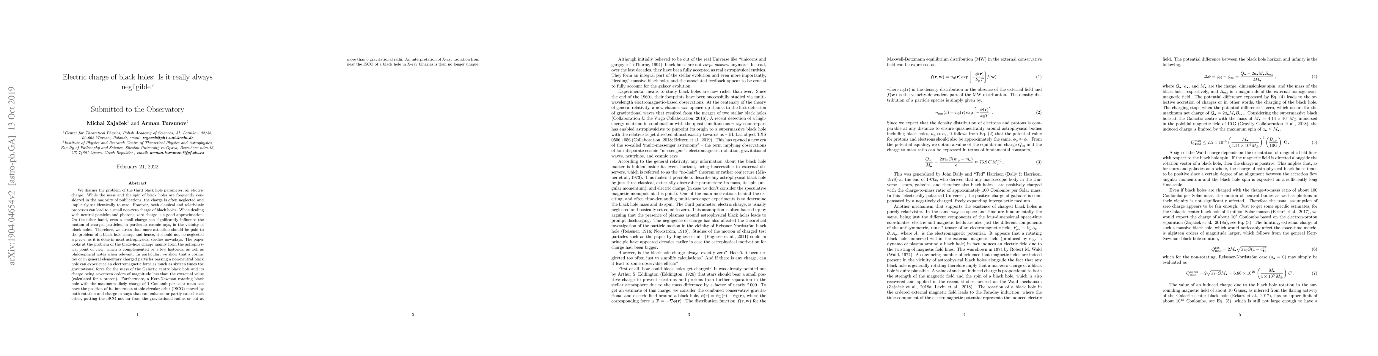 We discuss the problem of the third black hole parameter, an electric charge. While the mass and the spin of black holes are frequently considered in the majority of publications, the charge is often neglected and implicitly set identically to zero. However, both classical and relativistic processes can lead to a small non-zero charge of black holes. When dealing with neutral particles and photons, zero charge is a good approximation. On the other hand, even a small charge can significantly influence the motion of charged particles, in particular cosmic rays, in the vicinity of black holes. Therefore, we stress that more attention should be paid to the problem of a black-hole charge and hence, it should not be neglected a priori, as it is done in most astrophysical studies nowadays. The paper looks at the problem of the black-hole charge mainly from the astrophysical point of view, which is complemented by a few historical as well as philosophical notes when relevant. In particular, we show that a cosmic ray or in general elementary charged particles passing a non-neutral black hole can experience an electromagnetic force as much as sixteen times the gravitational force for the mass of the Galactic centre black hole and its charge being seventeen orders of magnitude less than the extremal value (calculated for a proton). Furthermore, a Kerr-Newman rotating black hole with the maximum likely charge of 1 Coulomb per solar mass can have the position of its innermost stable circular orbit (ISCO) moved by both rotation and charge in ways that can enhance or partly cancel each other, putting the ISCO not far from the gravitational radius or out at more than 6 gravitational radii. An interpretation of X-ray radiation from near the ISCO of a black hole in X-ray binaries is then no longer unique.