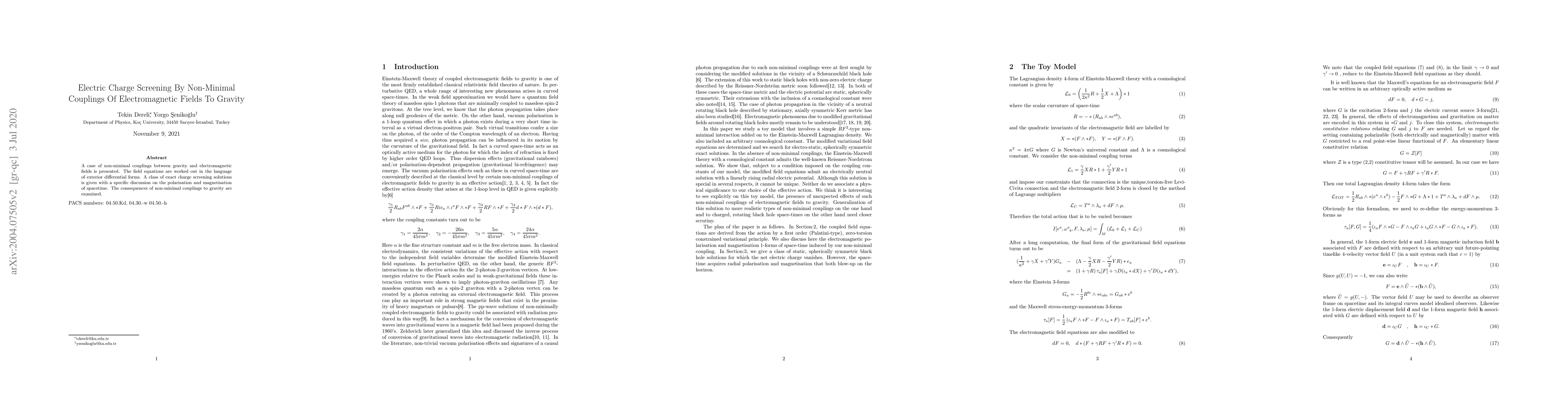 A case of non-minimal couplings between gravity and electromagnetic fields is presented. The field equations are worked out in the language of exterior differential forms. An exact charge screening class of solutions is given with a specific discussion on the polarisation and magnetisation of spacetime. The consequences of non-minimal couplings to gravity are examined.