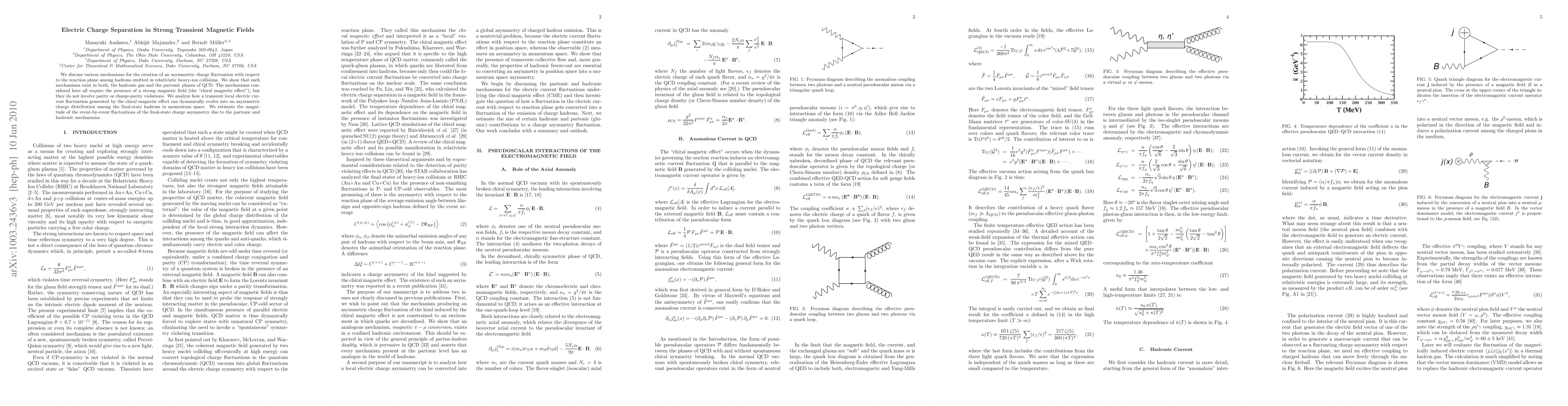 We discuss various mechanisms for the creation of an asymmetric charge fluctuation with respect to the reaction plane among hadrons emitted in relativistic heavy-ion collisions. We show that such mechanisms exist in both, the hadronic gas and the partonic phases of QCD. The mechanisms considered here all require the presence of a strong magnetic field (the ``chiral magnetic effect''), but they do not involve parity or charge-parity violations. We analyze how a transient local electric current fluctuation generated by the chiral magnetic effect can dynamically evolve into an asymmetric charge distribution among the final-state hadrons in momentum space. We estimate the magnitude of the event-by-event fluctuations of the final-state charge asymmetry due to the partonic and hadronic mechanisms.