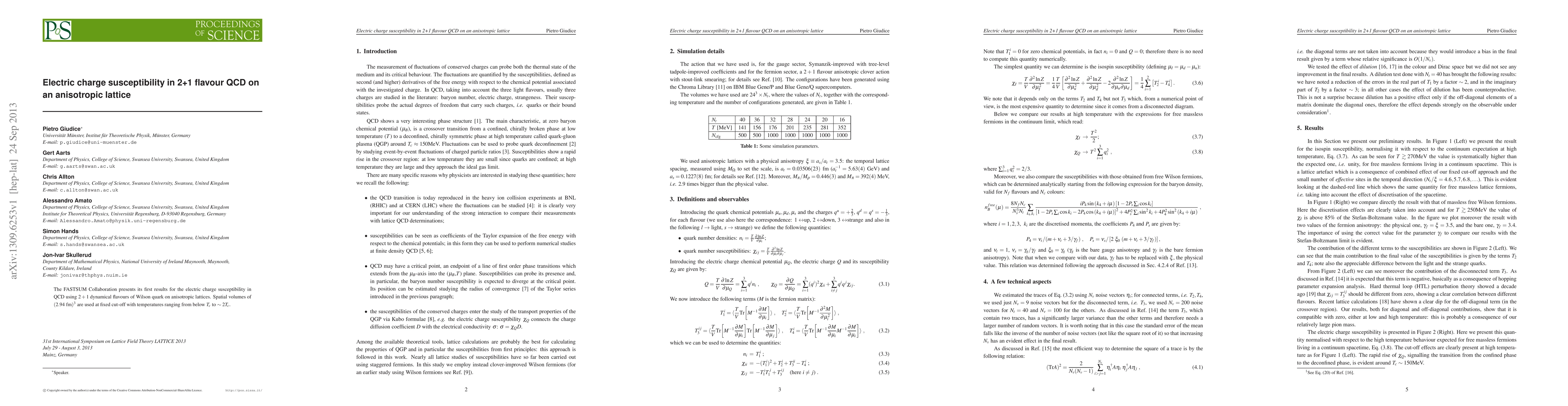 Summary: The FASTSUM Collaboration reports on electric charge susceptibility in 2+1 flavour QCD on anisotropic lattices, utilizing 2+1 dynamical flavours of Wilson quarks and exploring spatial volumes of (2.94 fm)^3 at various temperatures from below to above the critical temperature T_c.