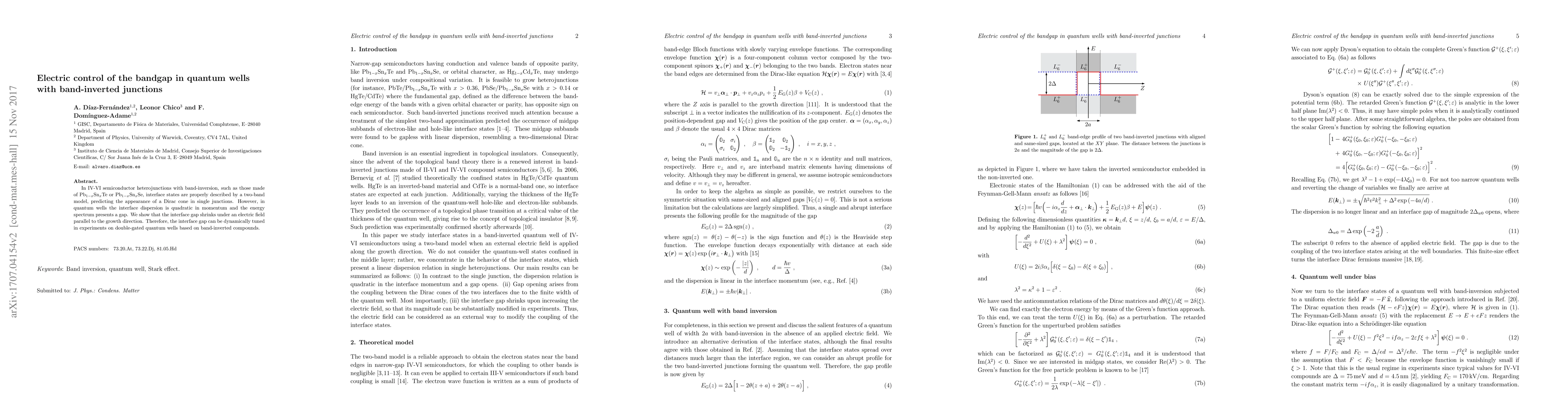 This paper demonstrates that the bandgap in quantum wells made from band-inverted IV-VI semiconductor heterojunctions can be dynamically controlled by applying an electric field parallel to the growth direction, enabling potential applications in tunable electronic devices.