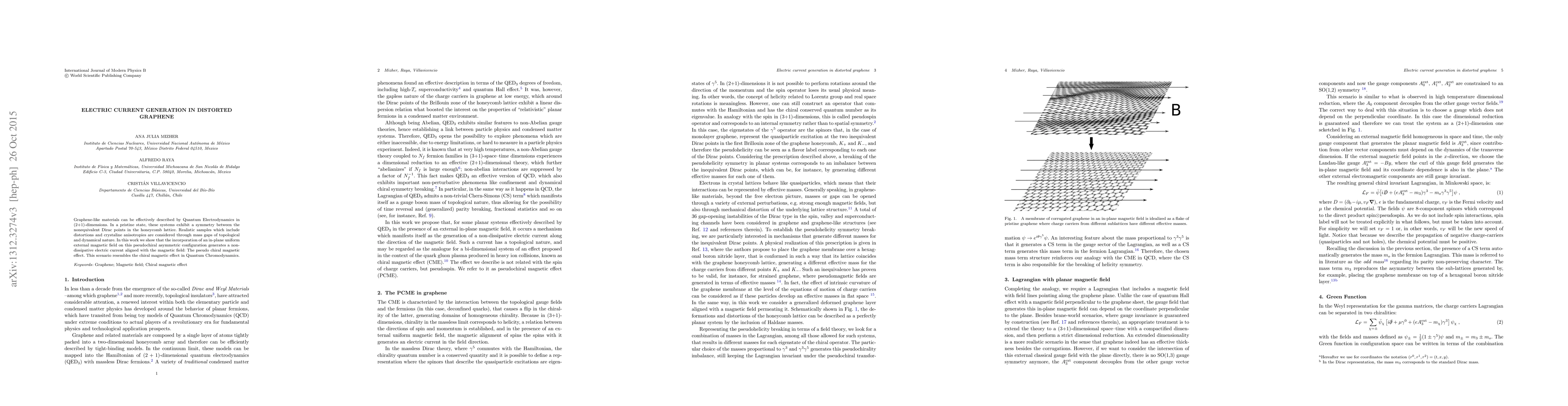 This paper investigates the impact of an in-plane uniform magnetic field on distorted graphene, demonstrating that it induces a non-dissipative electric current aligned with the field, termed the pseudo chiral magnetic effect, analogous to the chiral magnetic effect in Quantum Chromodynamics.
