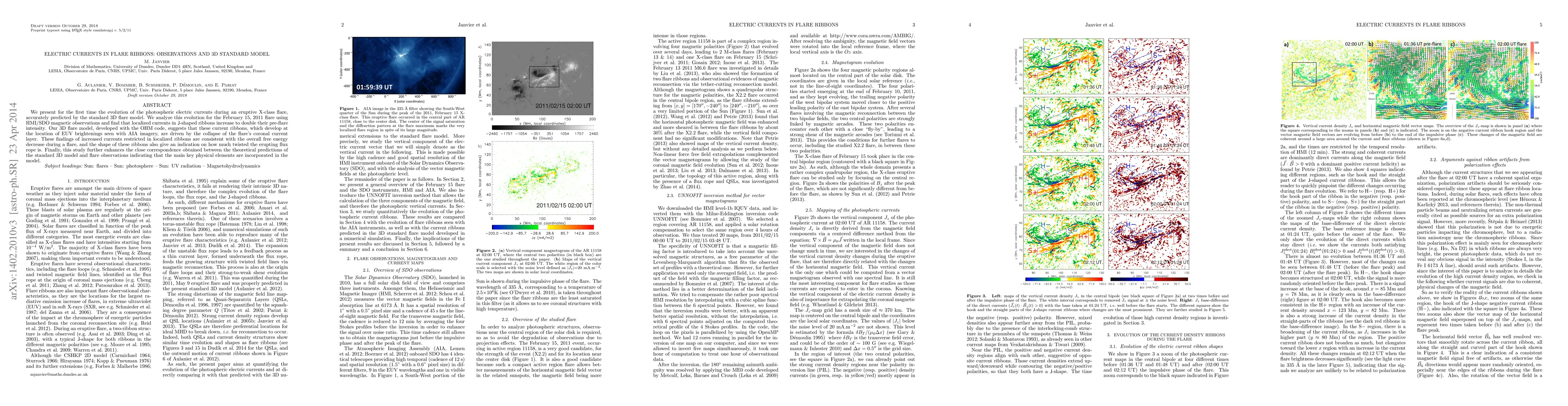 We present for the first time the evolution of the photospheric electric currents during an eruptive X-class flare, accurately predicted by the standard 3D flare model. We analyze this evolution for the February 15, 2011 flare using HMI/SDO magnetic observations and find that localized currents in \J-shaped ribbons increase to double their pre-flare intensity. Our 3D flare model, developed with the OHM code, suggests that these current ribbons, which develop at the location of EUV brightenings seen with AIA imagery, are driven by the collapse of the flare's coronal current layer. These findings of increased currents restricted in localized ribbons are consistent with the overall free energy decrease during a flare, and the shape of these ribbons also give an indication on how much twisted the erupting flux rope is. Finally, this study further enhances the close correspondence obtained between the theoretical predictions of the standard 3D model and flare observations indicating that the main key physical elements are incorporated in the model.