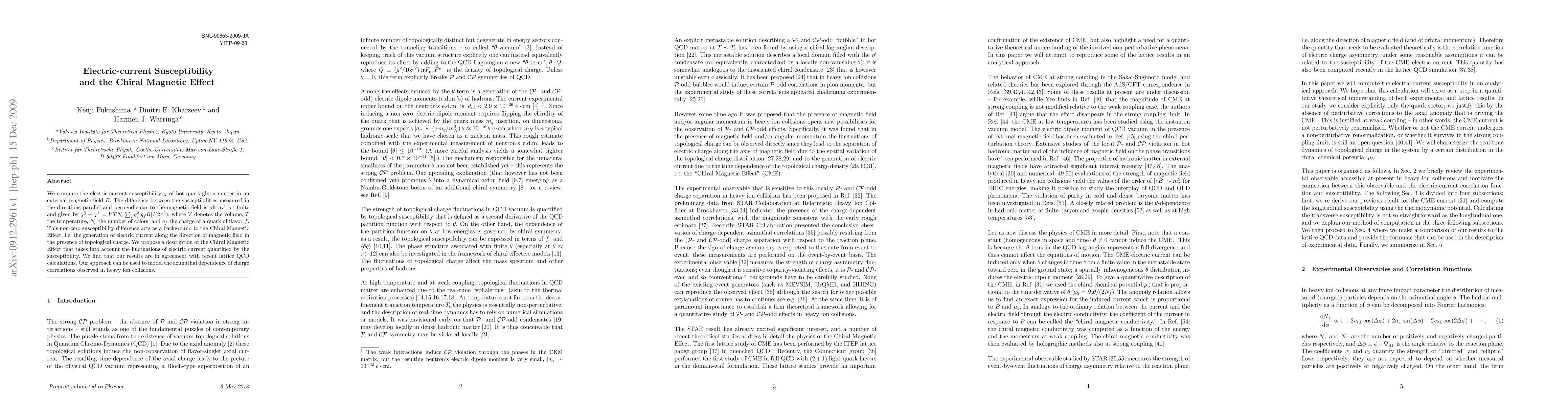 We compute the electric-current susceptibility \chi of hot quark-gluon matter in an external magnetic field B. The difference between the susceptibilities measured in the directions parallel and perpendicular to the magnetic field is ultraviolet finite and given by \chi^\parallel-\chi^\perp = VTN_c\sum_f q_f^2 |q_f B|/(2\pi^2), where V denotes the volume, T the temperature, N_c the number of colors, and q_f the charge of a quark of flavor f. This non-zero susceptibility difference acts as a background to the Chiral Magnetic Effect, i.e. the generation of electric current along the direction of magnetic field in the presence of topological charge. We propose a description of the Chiral Magnetic Effect that takes into account the fluctuations of electric current quantified by the susceptibility. We find that our results are in agreement with recent lattice QCD calculations. Our approach can be used to model the azimuthal dependence of charge correlations observed in heavy ion collisions.