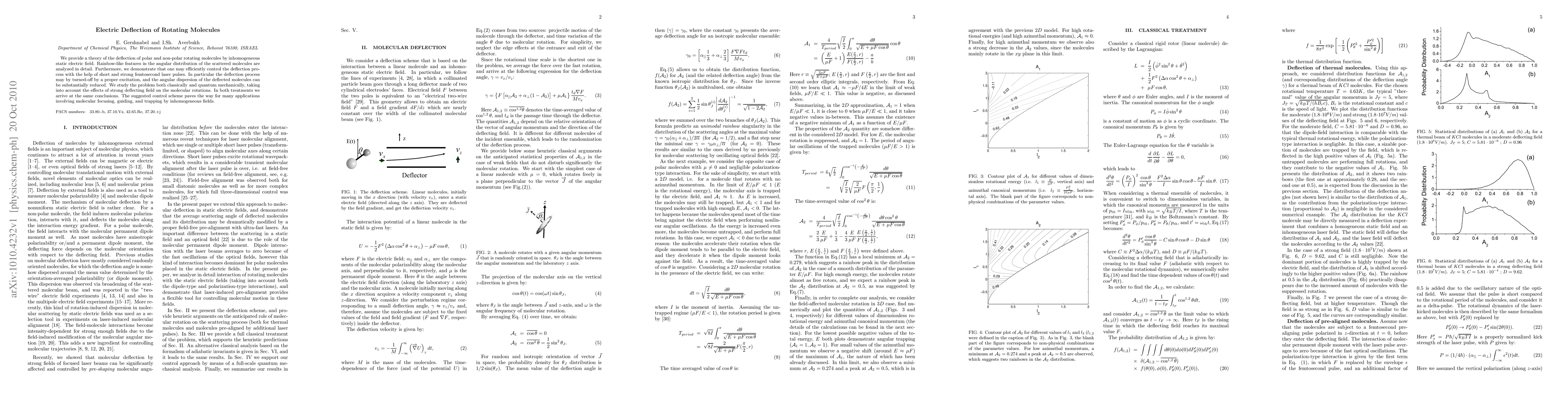 The paper presents a detailed theory of molecular deflection by inhomogeneous electric fields, combining classical and quantum mechanical approaches, and introduces a novel method for controlling molecular deflection using femtosecond laser pulses.