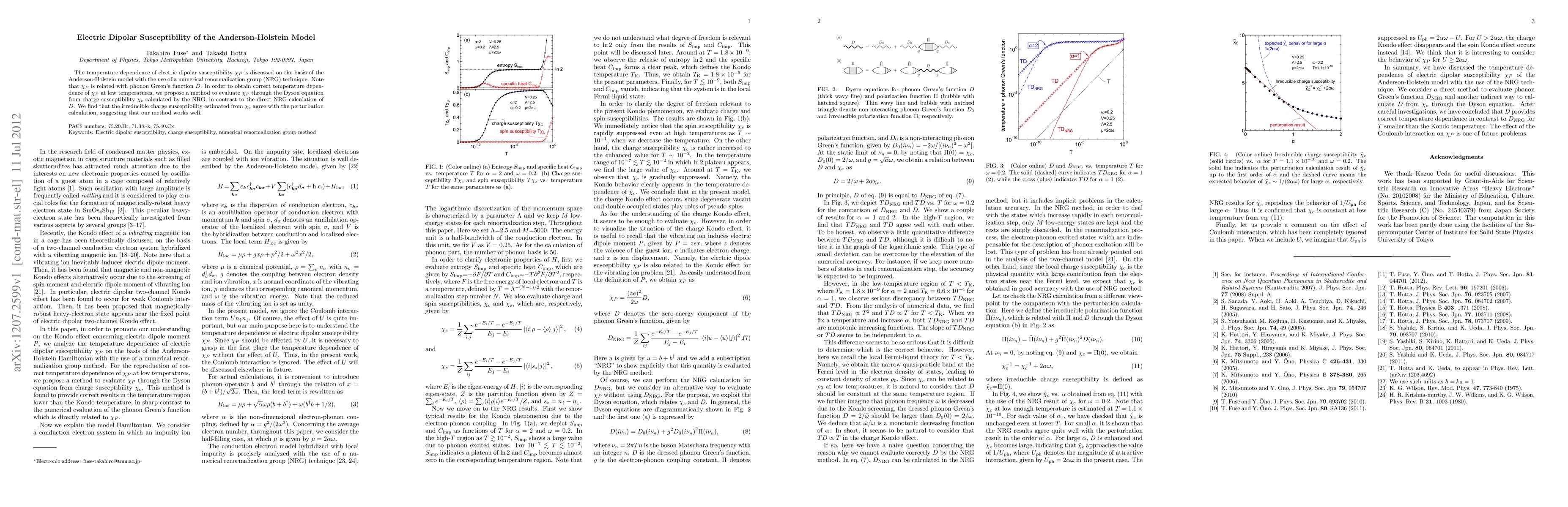 The temperature dependence of electric dipolar susceptibility \chi_P is discussed on the basis of the Anderson-Holstein model with the use of a numerical renormalization group (NRG) technique. Note that P is related with phonon Green's function D. In order to obtain correct temperature dependence of P at low temperatures, we propose a method to evaluate P through the Dyson equation from charge susceptibility \chi_c calculated by the NRG, in contrast to the direct NRG calculation of D. We find that the irreducible charge susceptibility estimated from \chi_c agree with the perturbation calculation, suggesting that our method works well.