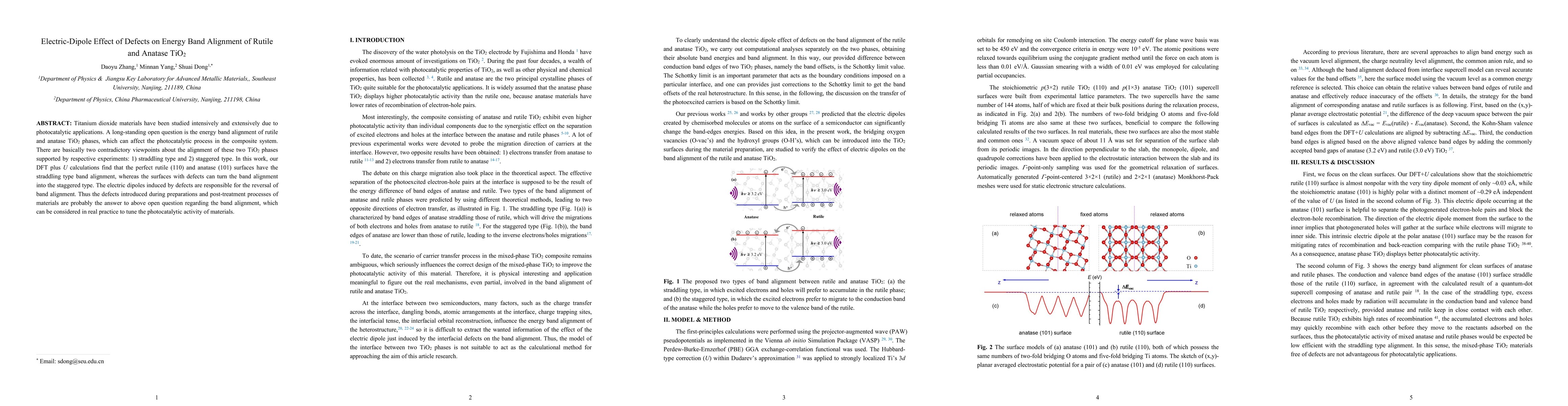 This study reveals that defects on rutile and anatase TiO2 surfaces induce electric dipoles, causing a shift from straddling to staggered type band alignment, which is pivotal for optimizing photocatalytic activity. The findings suggest that material preparation methods significantly impact energy band alignment.