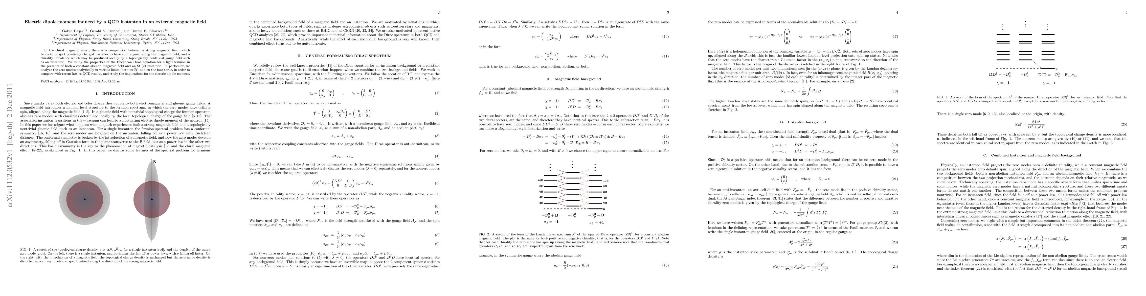 In the chiral magnetic effect, there is a competition between a strong magnetic field, which tends to project positively charged particles to have spin aligned along the magnetic field, and a chirality imbalance which may be produced locally by a topologically nontrivial gauge field such as an instanton. We study the properties of the Euclidean Dirac equation for a light fermion in the presence of both a constant abelian magnetic field and an SU(2) instanton. In particular, we analyze the zero modes analytically in various limits, both on R^4 and on the four-torus, in order to compare with recent lattice QCD results, and study the implications for the electric dipole moment.