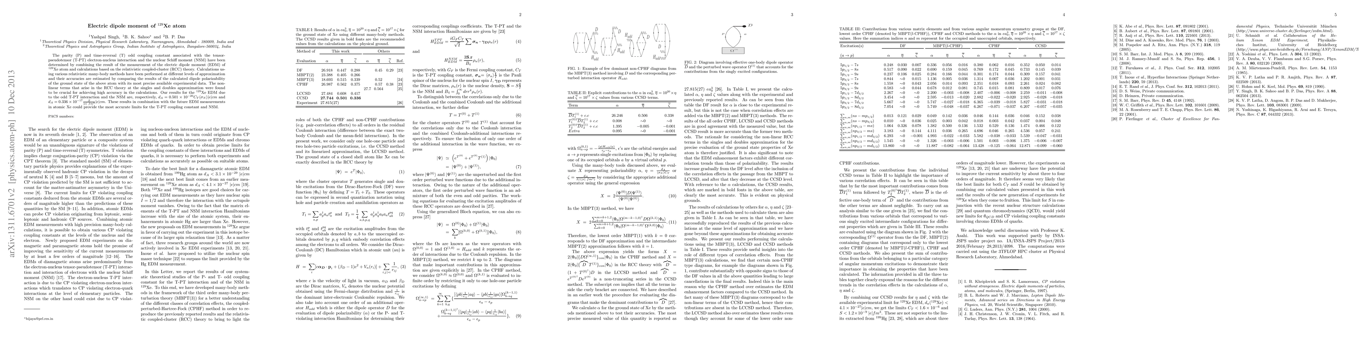This paper determines the electric dipole moment (EDM) of ^{129}Xe atom, combining experimental measurements and relativistic coupled-cluster theory calculations. The results provide precise values for the T-PT interaction and nuclear Schiff moment, which could set accurate limits for these fundamental constants.