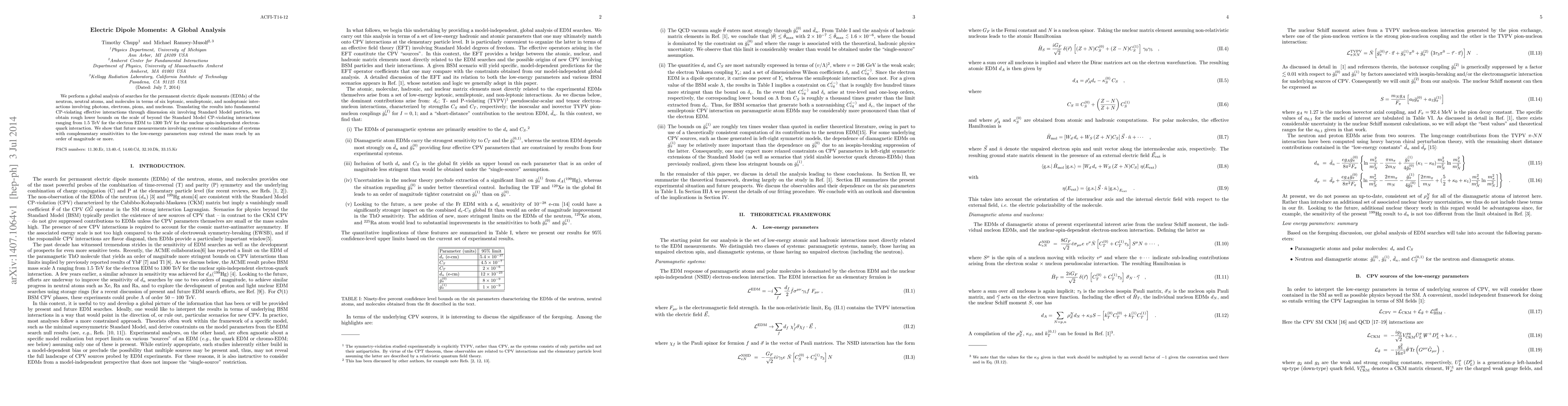 We perform a global analysis of searches for the permanent electric dipole moments (EDMs) of the neutron, neutral atoms, and molecules in terms of six leptonic, semileptonic, and nonleptonic interactions involving photons, electrons, pions, and nucleons. Translating the results into fundamental CP-violating effective interactions through dimension six involving Standard Model particles, we obtain rough lower bounds on the scale of beyond the Standard Model CP-violating interactions ranging from 1.5 TeV for the electron EDM to 1300 TeV for the nuclear spin-independent electron-quark interaction. We show that future measurements involving systems or combinations of systems with complementary sensitivities to the low-energy parameters may extend the mass reach by an order of magnitude or more.