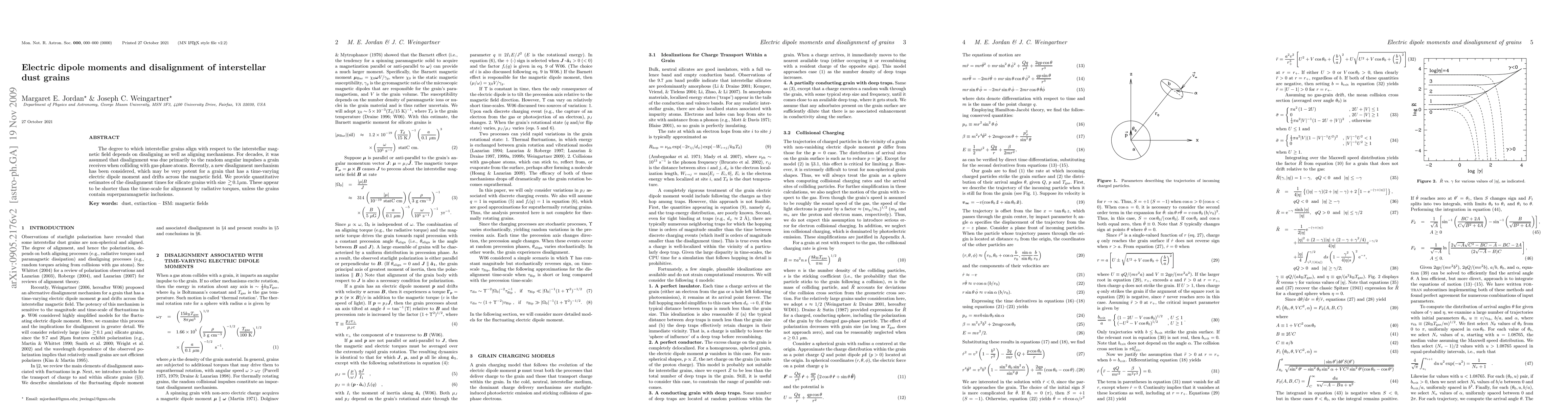 The degree to which interstellar grains align with respect to the interstellar magnetic field depends on disaligning as well as aligning mechanisms. For decades, it was assumed that disalignment was due primarily to the random angular impulses a grain receives when colliding with gas-phase atoms. Recently, a new disalignment mechanism has been considered, which may be very potent for a grain that has a time-varying electric dipole moment and drifts across the magnetic field. We provide quantitative estimates of the disalignment times for silicate grains with size > approximately 0.1 micron. These appear to be shorter than the time-scale for alignment by radiative torques, unless the grains contain superparamagnetic inclusions.