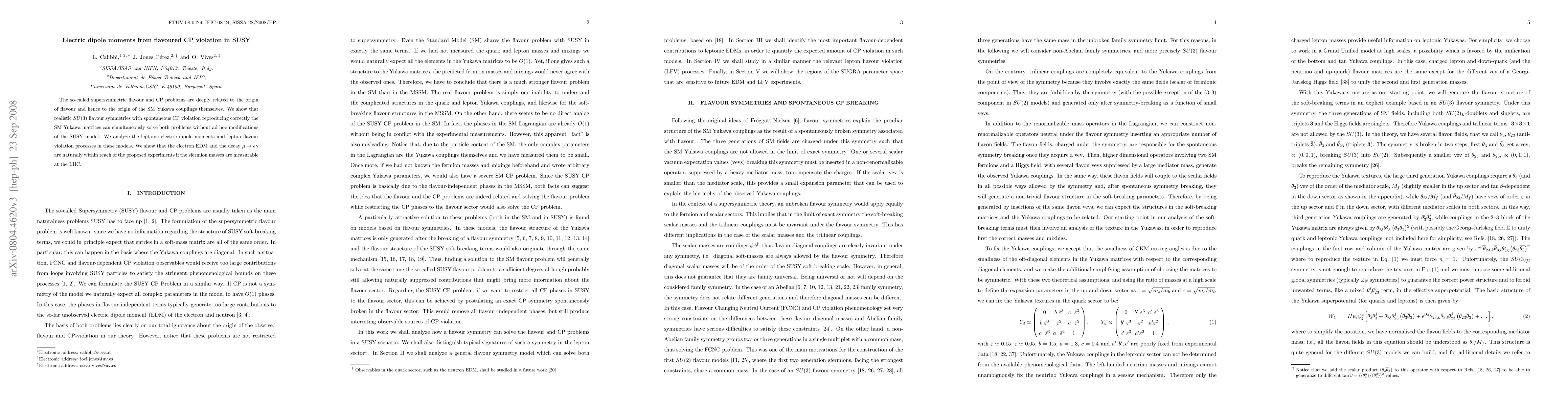 This paper explores how supersymmetric models with SU(3) flavour symmetries and spontaneous CP violation can simultaneously address the supersymmetric flavour and CP problems. It demonstrates that the electron electric dipole moment and the decay mu -> e gamma are within experimental reach, provided sfermion masses are measurable at the LHC.
