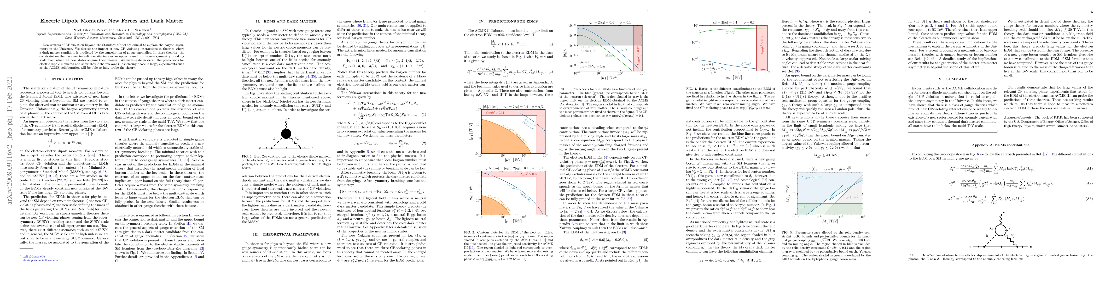 This paper explores new CP-violating interactions beyond the Standard Model that could explain the Universe's baryon asymmetry, focusing on theories where dark matter arises from gauge anomaly cancellation. It finds that the dark matter relic density constrains the symmetry breaking scale, predicting significant electric dipole moments that could be probed by experiments like ACME if the CP-violating phase is large.