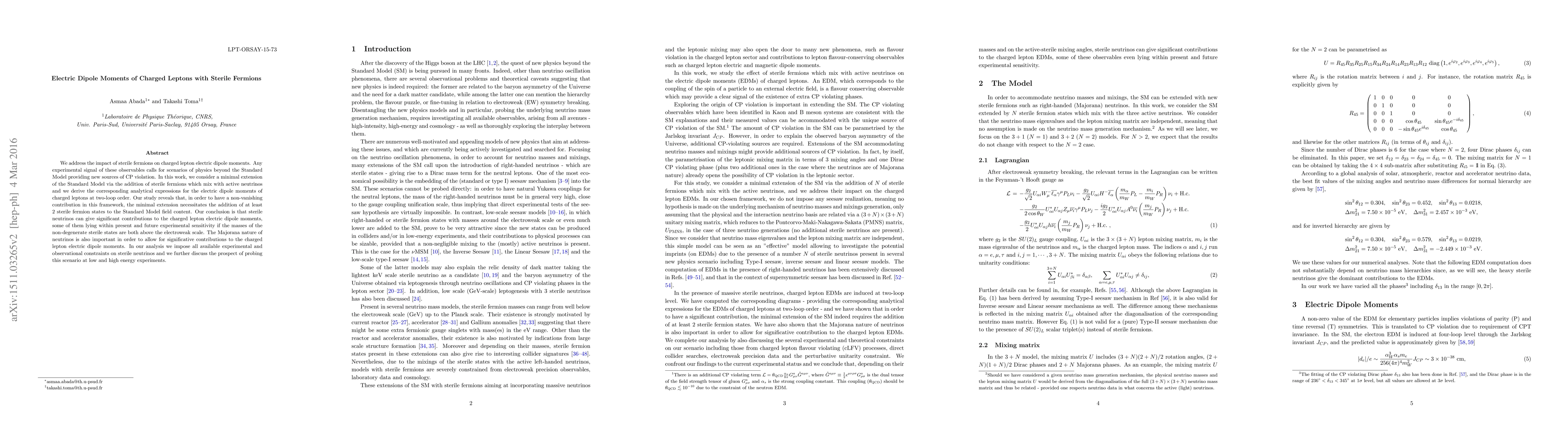 This paper investigates the influence of sterile fermions on charged lepton electric dipole moments, revealing that at least two sterile fermion states are needed to produce non-vanishing contributions. It concludes that sterile neutrinos can significantly impact these moments, potentially within the reach of current and future experiments, provided their masses are above the electroweak scale.