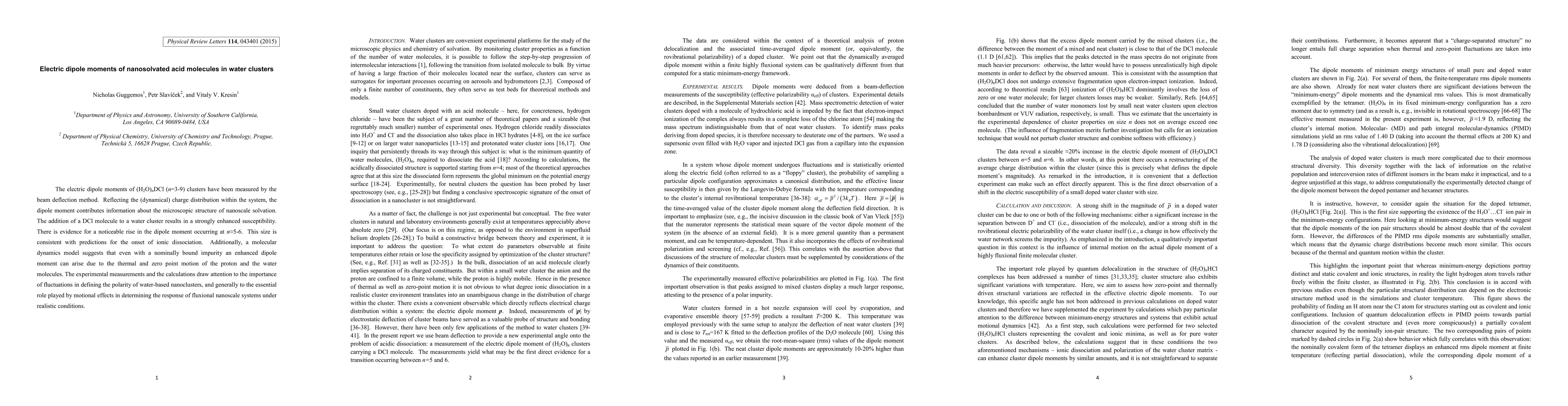 This study measures the electric dipole moments of small water clusters solvated with DCl using beam deflection, revealing a significant increase in dipole moment at $n\approx5-6$, suggesting the onset of ionic dissociation. The findings highlight the importance of motional effects in determining the polarity of nanoscale water-based systems.