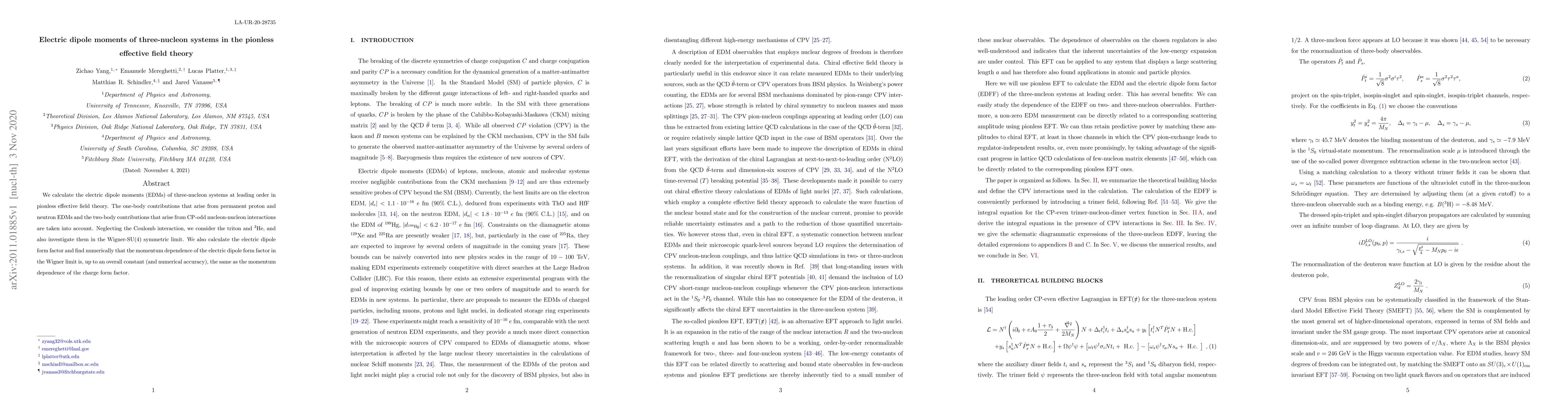 This paper calculates the electric dipole moments (EDMs) of three-nucleon systems (triton and ${}^3$He) in pionless effective field theory, considering both one-body and two-body contributions. It finds that the momentum dependence of the electric dipole form factor in the Wigner-SU(4) symmetric limit matches that of the charge form factor.