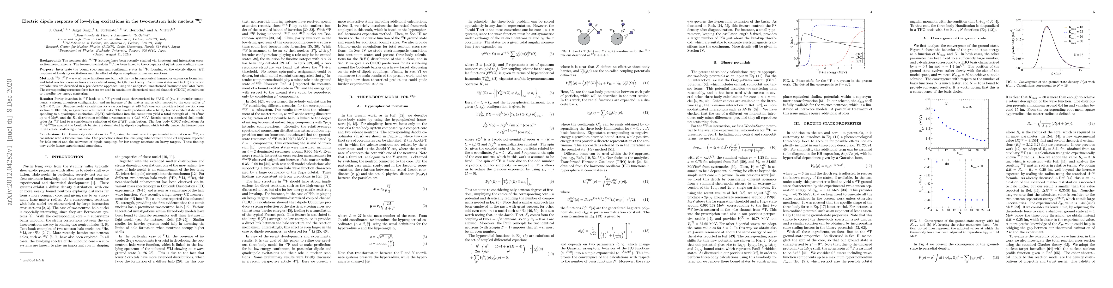 This paper investigates the electric dipole response of low-lying excitations in the two-neutron halo nucleus $^{29}$F, revealing a strong dineutron configuration and an increased matter radius. The study uses hyperspherical harmonics and Glauber theory to model the nucleus and its reaction cross sections, finding agreement with experimental data and highlighting the role of dipole couplings in nuclear reactions.