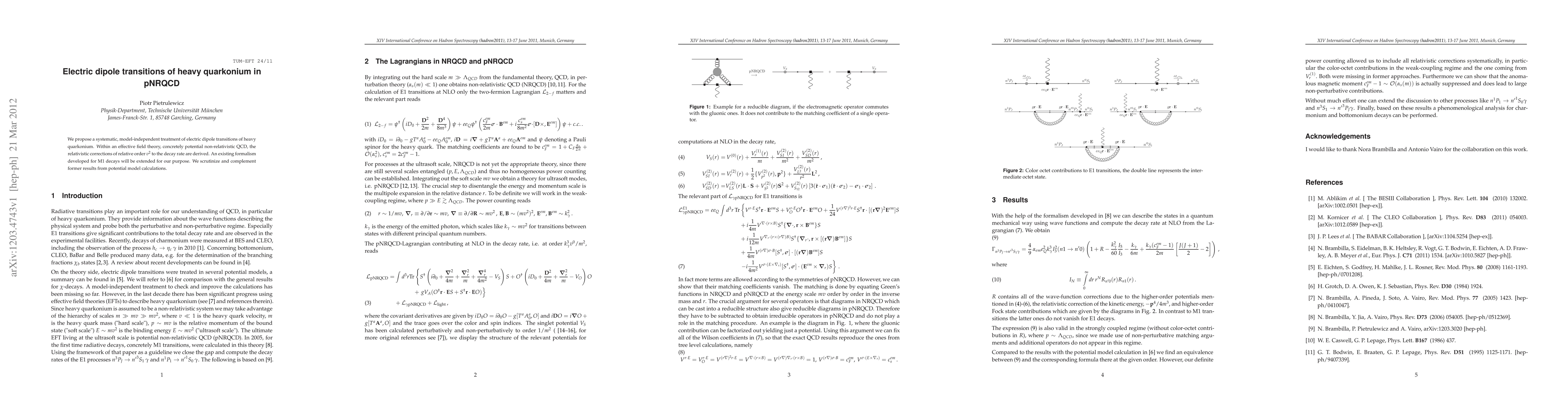 This paper systematically explores electric dipole transitions in heavy quarkonium using potential non-relativistic QCD, deriving relativistic corrections of order $v^2$ to the decay rate, and extends the existing formalism for M1 decays to complement previous potential model results.