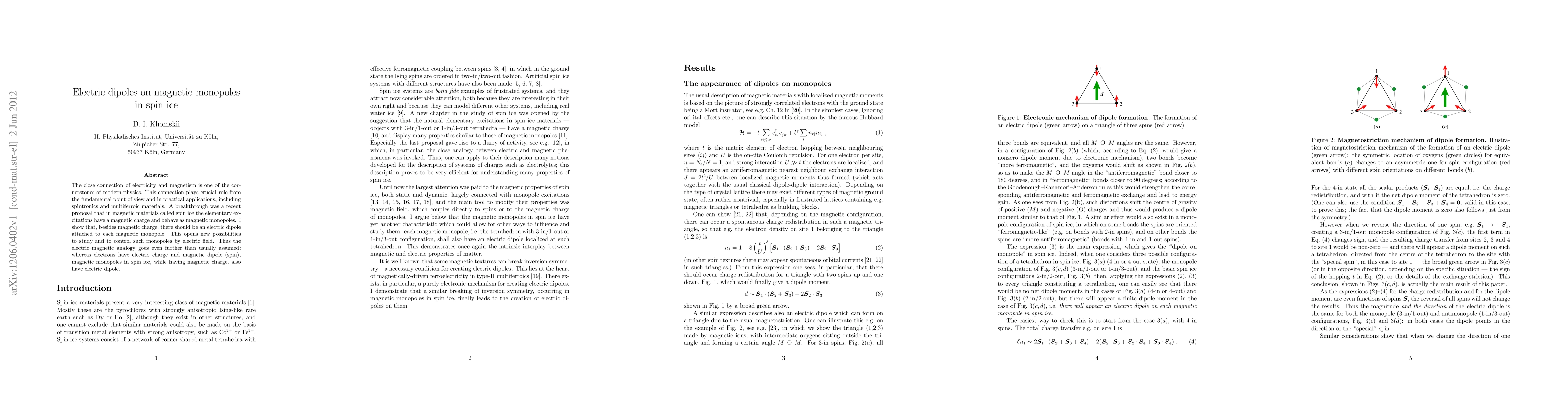This paper proposes that magnetic monopoles in spin ice possess not only magnetic charge but also an electric dipole, extending the electric-magnetic analogy beyond conventional assumptions. This discovery suggests new avenues for controlling these monopoles using electric fields.