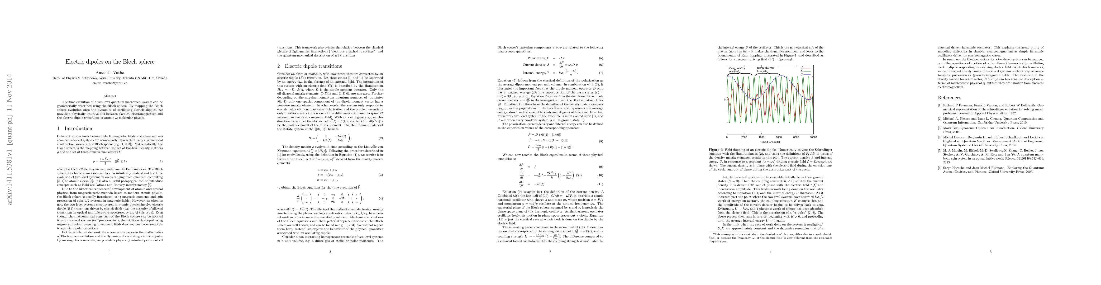 The time evolution of a two-level quantum mechanical system can be geometrically described using the Bloch sphere. By mapping the Bloch sphere evolution onto the dynamics of oscillating electric dipoles, we provide a physically intuitive link between classical electromagnetism and the electric dipole transitions of atomic & molecular physics.