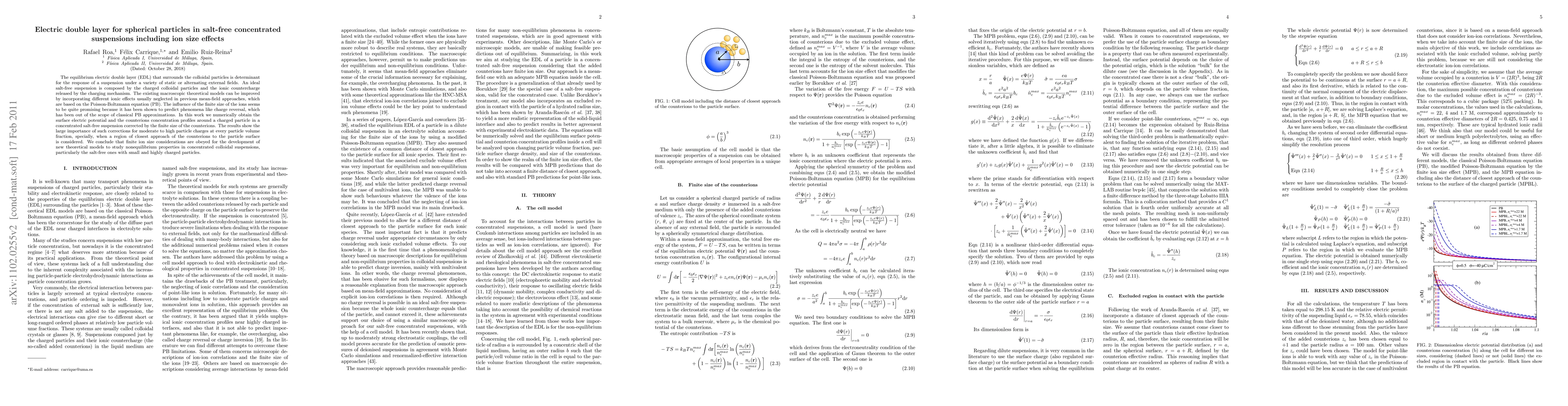 This paper investigates the electric double layer around spherical particles in salt-free concentrated suspensions, focusing on the effects of ion size. It finds that incorporating finite ion size significantly impacts the electric potential and counterion concentration profiles, especially for highly charged particles, suggesting the need for revised theoretical models.