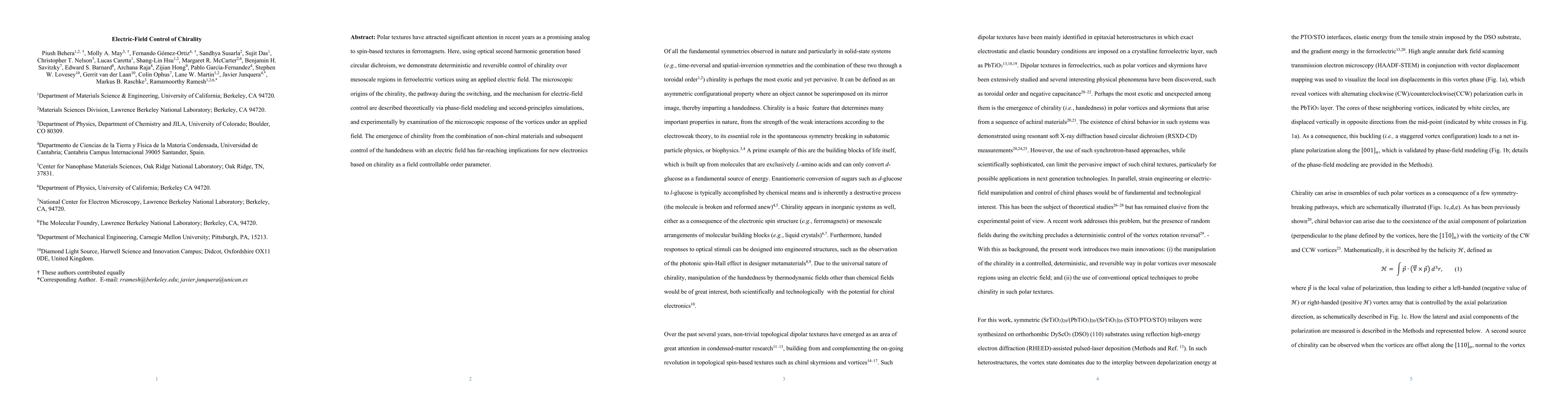 Researchers demonstrate control of chirality in ferroelectric vortices using an applied electric field, opening up new possibilities for electronics based on chirality as a controllable order parameter.