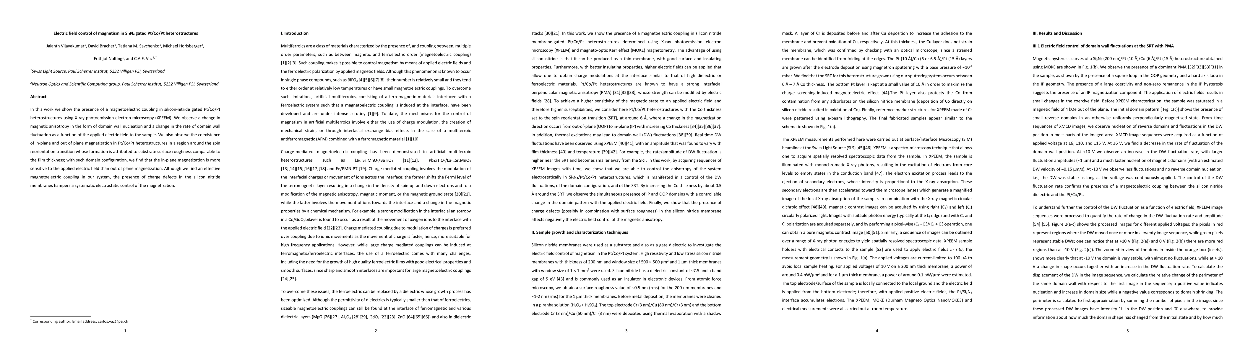 This research demonstrates magnetoelectric coupling in silicon-nitride gated Pt/Co/Pt heterostructures, showing that an applied electric field can alter magnetic anisotropy and domain wall dynamics. Despite finding effective coupling, charge defects in the silicon nitride limit precise electrostatic control of magnetization.