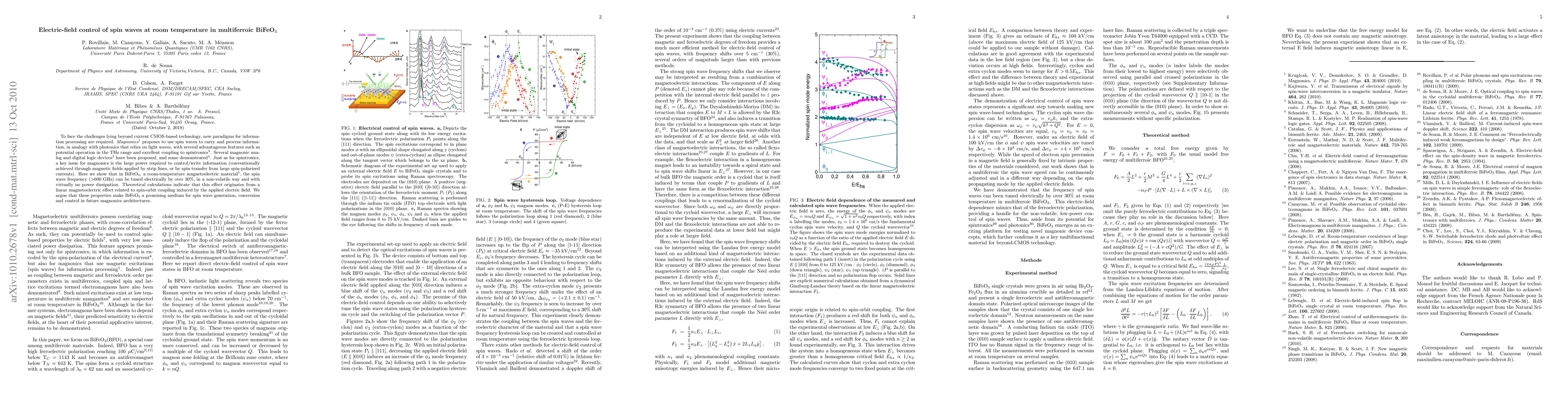 This research demonstrates the electric-field control of spin waves in room-temperature multiferroic BiFeO3, achieving frequency tuning of over 30% with minimal power loss. The findings suggest BiFeO3 as a potential material for future magnonics applications due to its non-volatile and efficient electric control of spin waves.