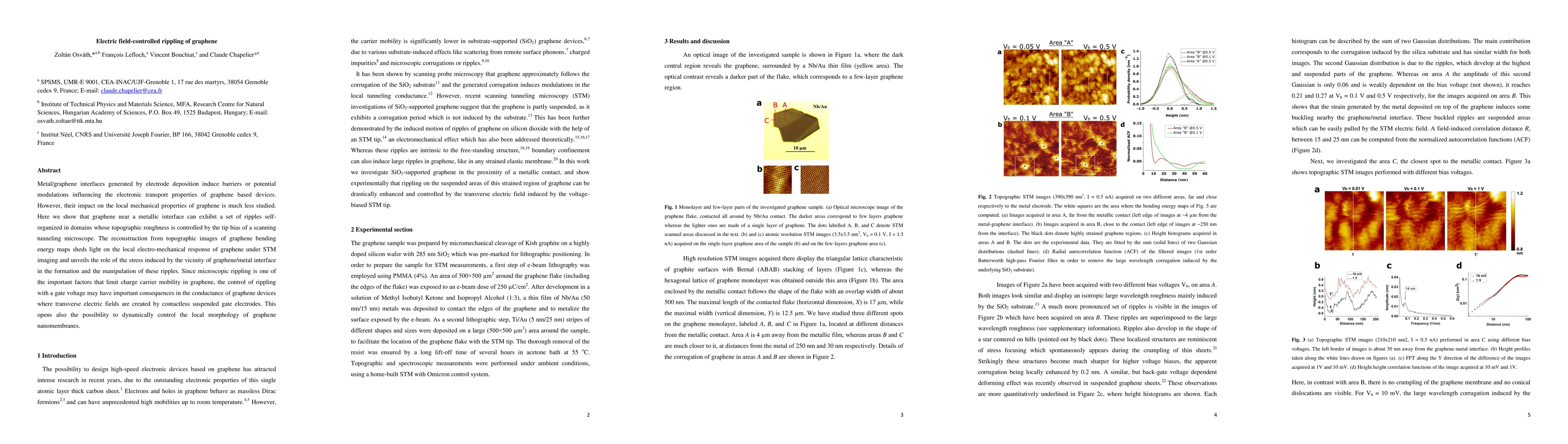 This study demonstrates that electric fields from scanning tunneling microscopy can induce controlled rippling in graphene near metallic interfaces, revealing the electro-mechanical response and the stress effects of the graphene/metal boundary. Such controlled rippling may enhance conductance in graphene devices and enable dynamic manipulation of graphene nanomembrane morphology.