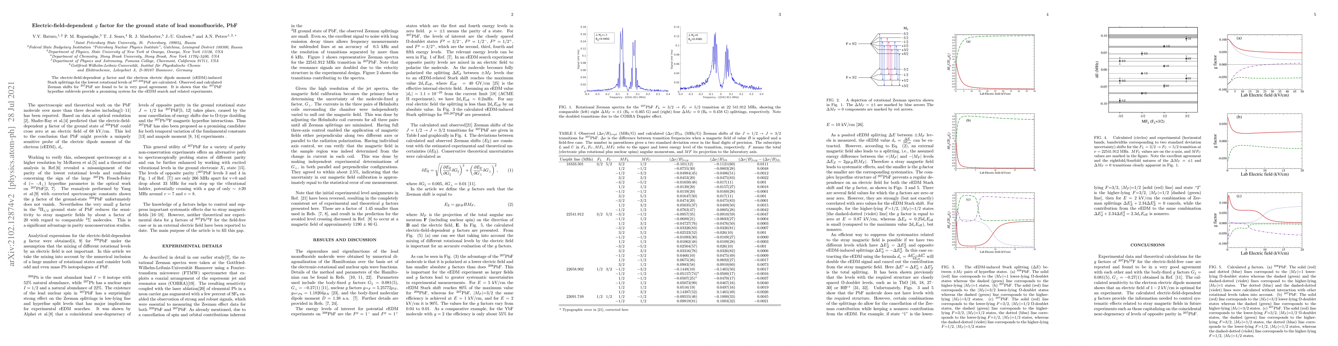 This study calculates the electric-field-dependent $g$ factor and electron electric dipole moment (eEDM)-induced Stark splittings for lead monofluoride, PbF, showing strong agreement between observed and calculated Zeeman shifts. The research highlights PbF as a promising system for eEDM searches and related experiments.