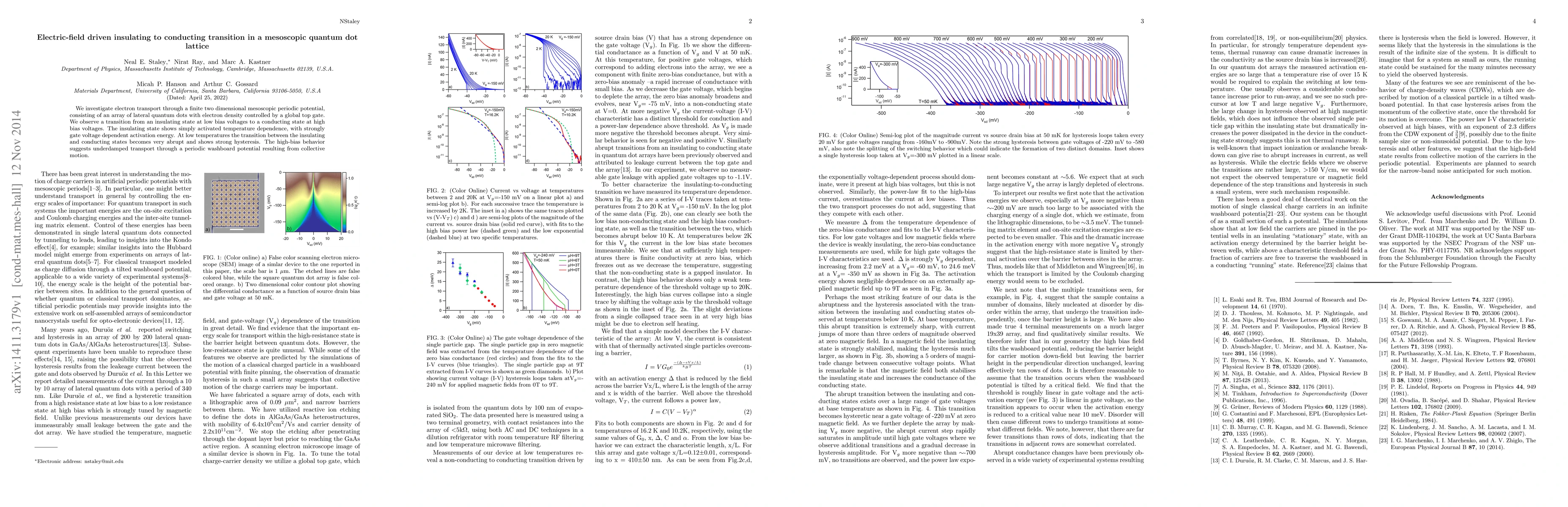 We investigate electron transport through a finite two dimensional mesoscopic periodic potential, consisting of an array of lateral quantum dots with electron density controlled by a global top gate. We observe a transition from an insulating state at low bias voltages to a conducting state at high bias voltages. The insulating state shows simply activated temperature dependence, with strongly gate voltage dependent activation energy. At low temperatures the transition between the insulating and conducting states becomes very abrupt and shows strong hysteresis. The high-bias behavior suggests underdamped transport through a periodic washboard potential resulting from collective motion.