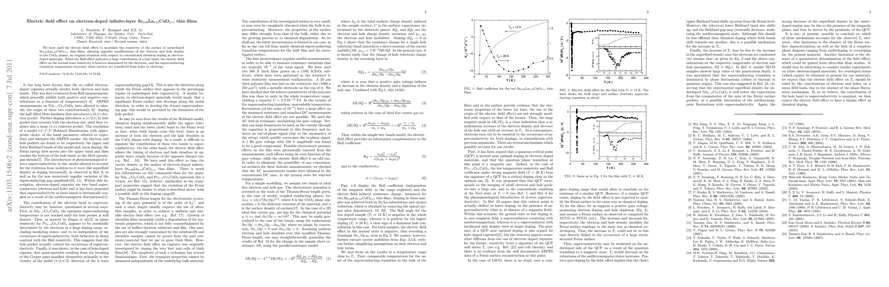 The research demonstrates the electric-field effect on underdoped Sr$_{0.88}$La$_{0.12}$CuO$_{2+x}$ thin films, revealing unique modifications in electron and hole densities within CuO$_2$ planes. Remarkably, transferring carriers from holes to electrons enhances the superconducting transition temperature, showcasing a distinct approach to conventional chemical doping in electron-doped materials.