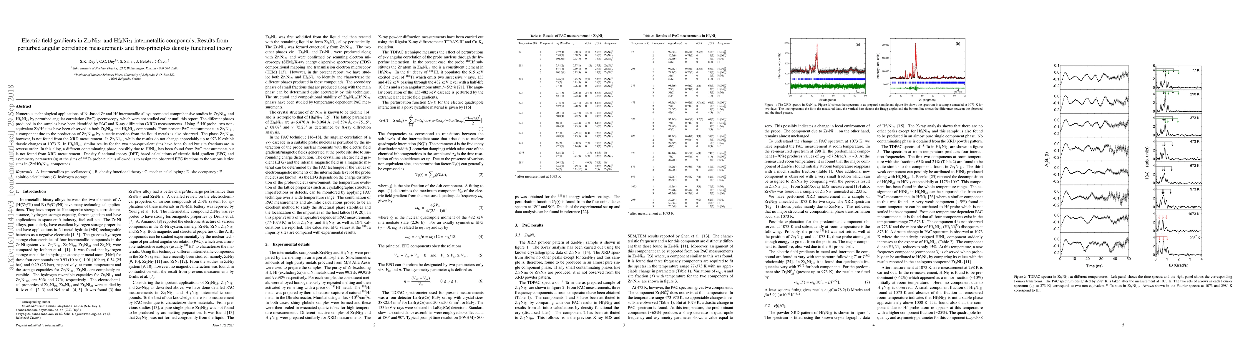 Numerous technological applications of Ni-based Zr and Hf intermetallic alloys promoted comprehensive studies in Zr$_8$Ni$_{21}$ and Hf$_8$Ni$_{21}$ by perturbed angular correlation (PAC) spectroscopy, which were not studied earlier until this report. The different phases produced in the samples have been identified by PAC and X-ray diffraction (XRD) measurements. Using $^{181}$Hf probe, two non-equivalent Zr/Hf sites have been observed in both Zr$_8$Ni$_{21}$ and Hf$_8$Ni$_{21}$ compounds. From present PAC measurements in Zr$_8$Ni$_{21}$, a component due to the production of Zr$_7$Ni$_{10}$ by eutectic reaction from the liquid metals is also observed. The phase Zr$_7$Ni$_{10}$, however, is not found from the XRD measurement. In Zr$_8$Ni$_{21}$, while the results do not change appreciably up to 973 K exhibit drastic changes at 1073 K. In Hf$_8$Ni$_{21}$, similar results for the two non-equivalent sites have been found but site fractions are in reverse order. In this alloy, a different contaminating phase, possibly due to HfNi$_3$, has been found from PAC measurements but is not found from XRD measurement. Density functional theory (DFT) based calculations of electric field gradient (EFG) and asymmetry parameter ($\eta$) at the sites of $^{181}$Ta probe nucleus allowed us to assign the observed EFG fractions to the various lattice sites in (Zr/Hf)$_8$Ni$_{21}$ compounds.