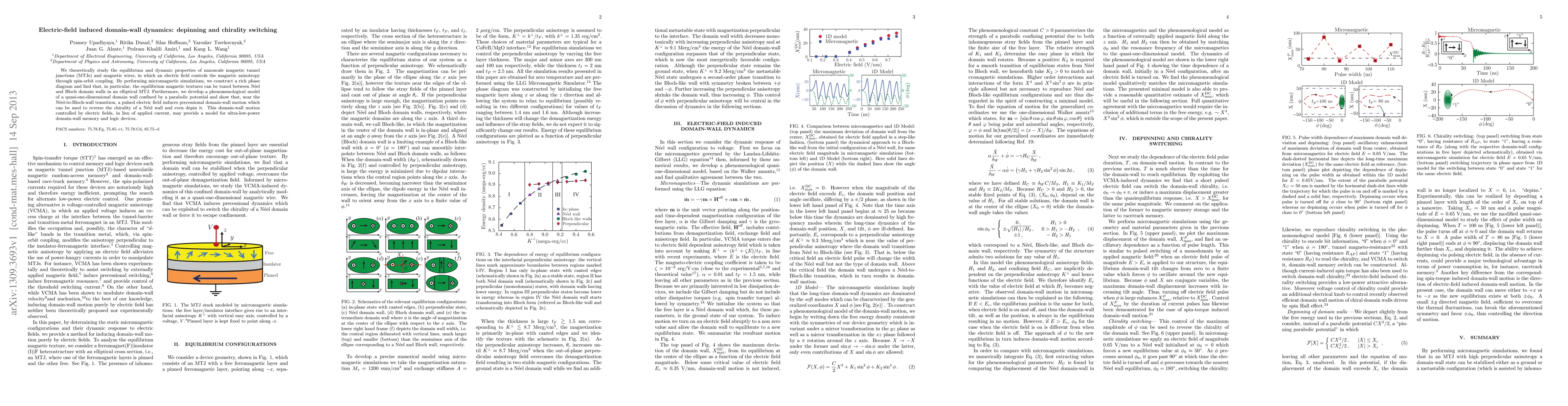 This paper theoretically investigates nanoscale magnetic tunnel junctions where an electric field manipulates magnetic anisotropy. It reveals that electric fields can induce domain-wall motion and switch chirality in Neel walls, suggesting potential for low-power domain-wall memory and logic applications.
