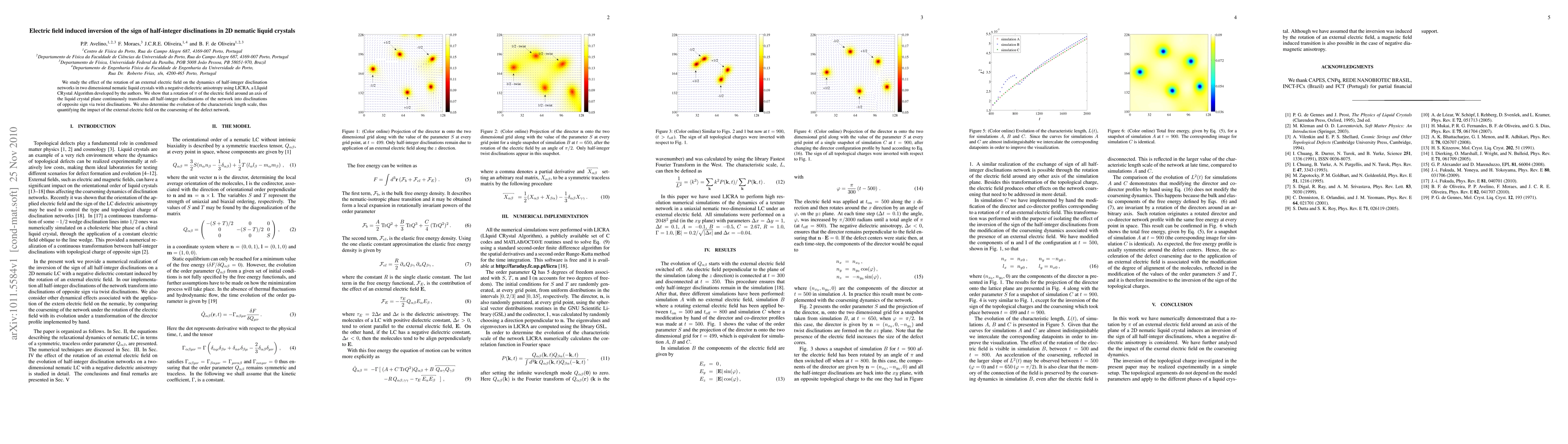 This paper investigates the transformation of half-integer disclinations in 2D nematic liquid crystals under an electric field using a developed algorithm. It demonstrates that a $\pi$ rotation of the electric field inverts the sign of these disclinations through twist disclinations and quantifies the effect on the defect network's coarsening.