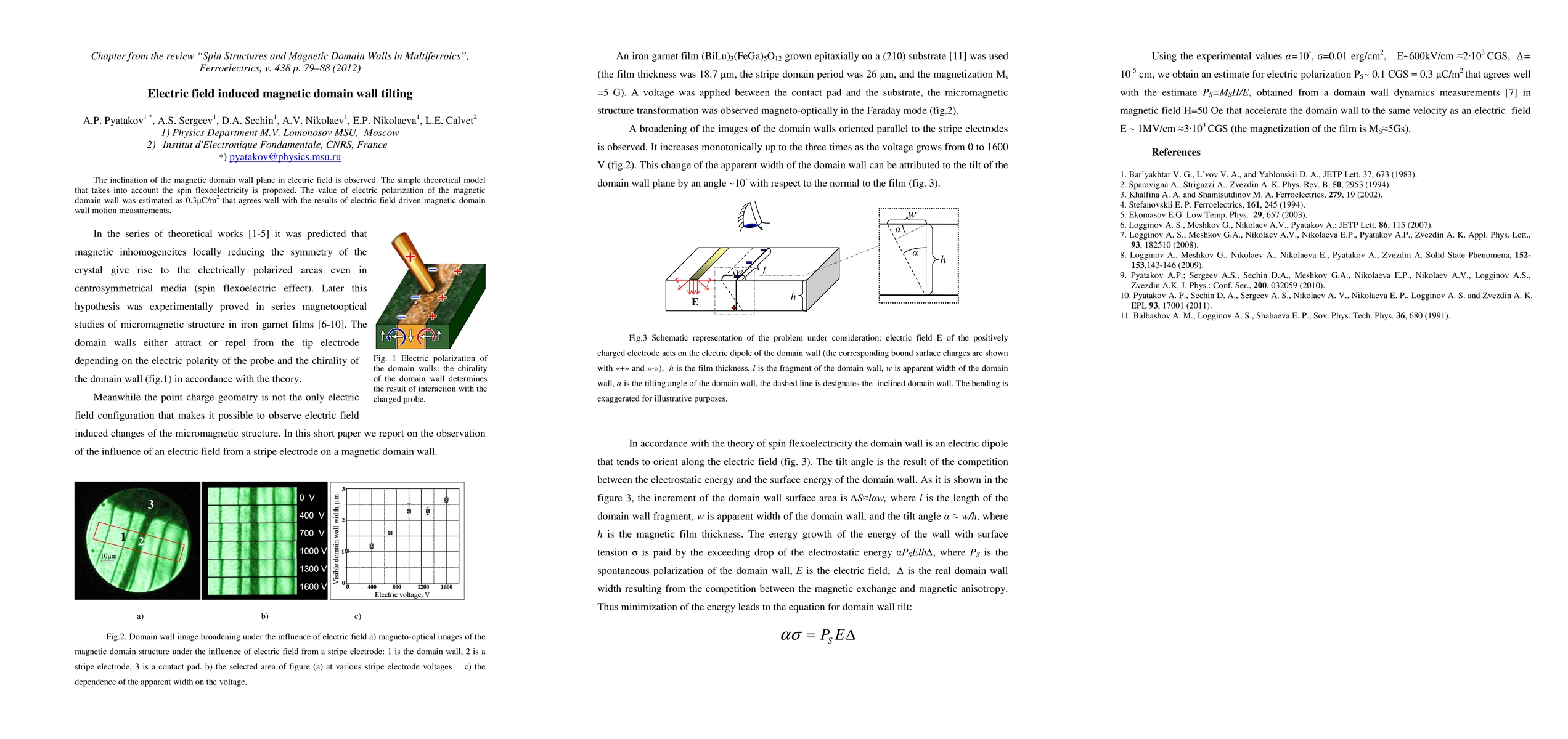 This research observes the electric field-induced tilting of magnetic domain walls and proposes a theoretical model incorporating spin flexoelectricity. The calculated electric polarization of 0.3 μC/m² aligns with empirical measurements of electric field-driven magnetic domain wall motion.