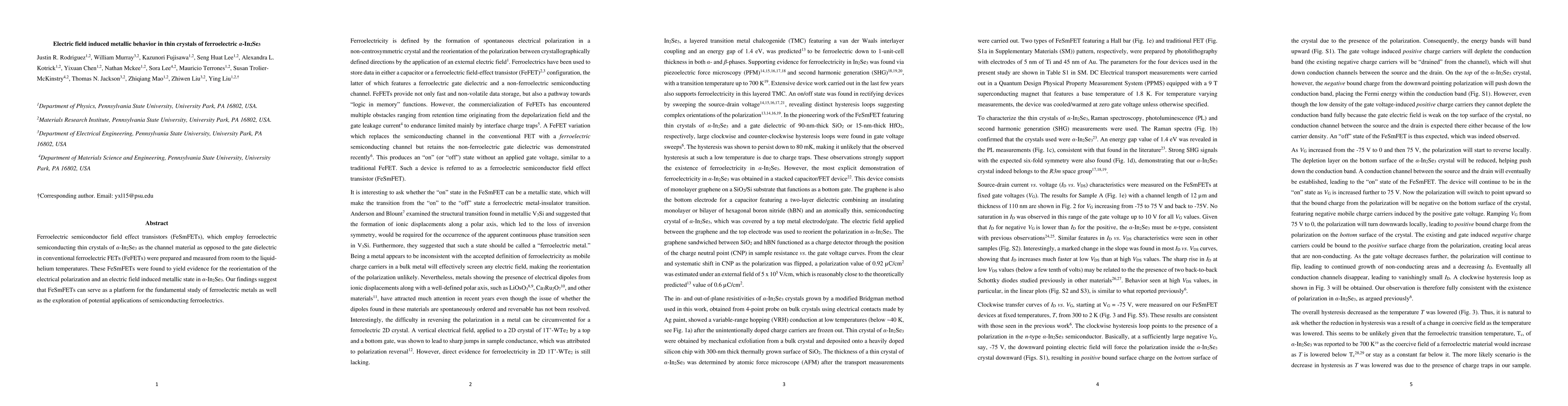 Ferroelectric semiconductor field effect transistors using {\alpha}-In2Se3 crystals demonstrate electric field-induced metallic behavior, suggesting potential for integrating data storage and logic functions in a single device. This unique metallic state is linked to the reorientation of electrical polarization in the ferroelectric material.