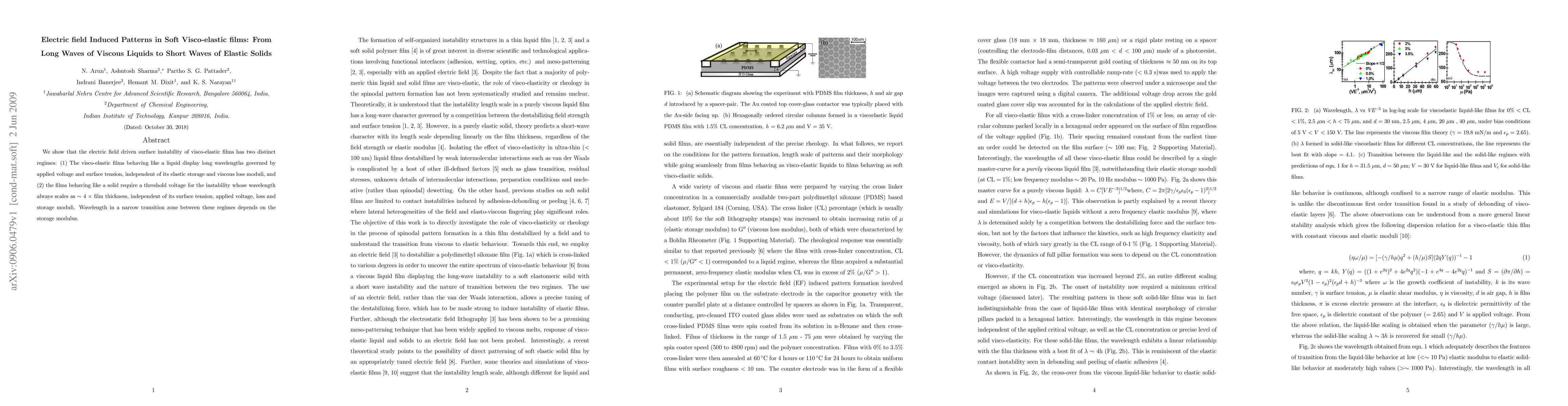 This paper explores the electric field-induced surface instability in visco-elastic films, identifying two regimes: one where films behave like liquids and display long wavelengths dependent on voltage and surface tension, and another where films behave like solids requiring a threshold voltage and exhibiting short wavelengths scaling with film thickness. The transition zone's wavelength depends on the storage modulus.
