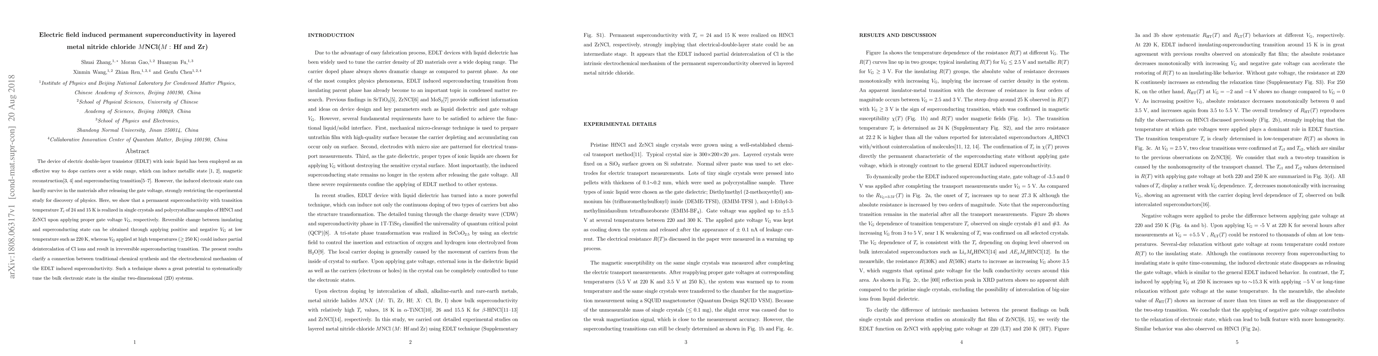 Researchers discovered permanent superconductivity in single crystals and polycrystalline samples of HfNCl and ZrNCl at temperatures as low as 15 K, achievable through application of proper gate voltage.